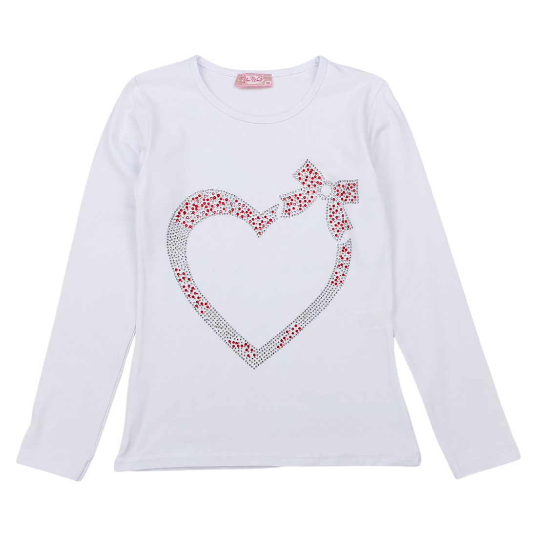Cotton blouse hearts, zircon girl white Your Word 5434-191024-3