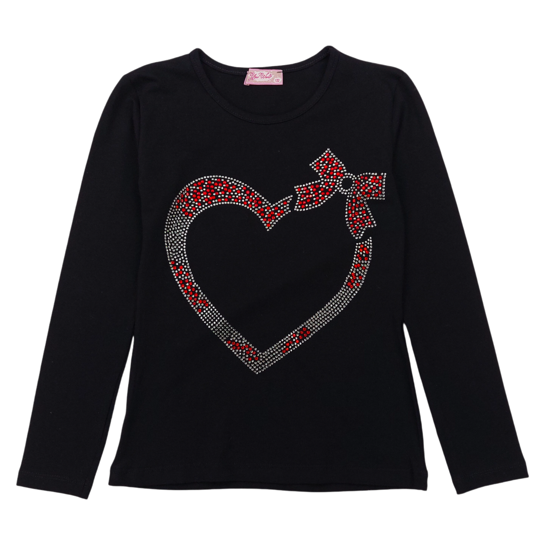 Cotton blouse hearts, zircon girl black Your Word 5434-191024-14