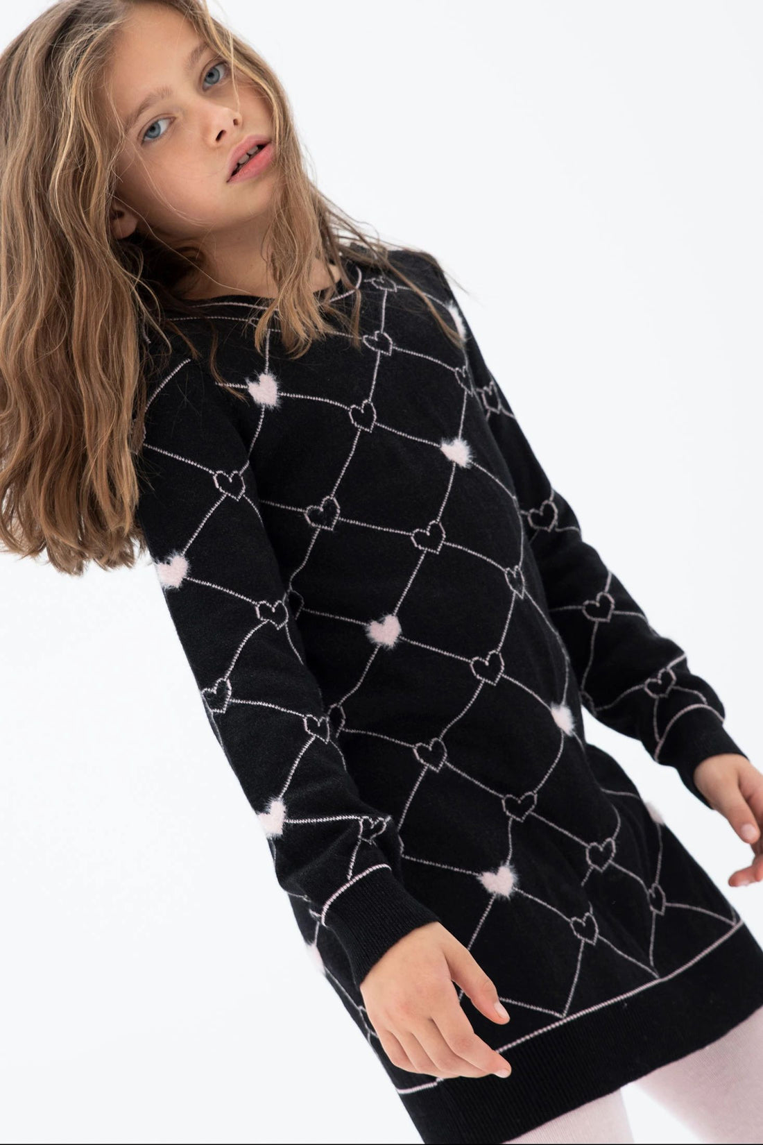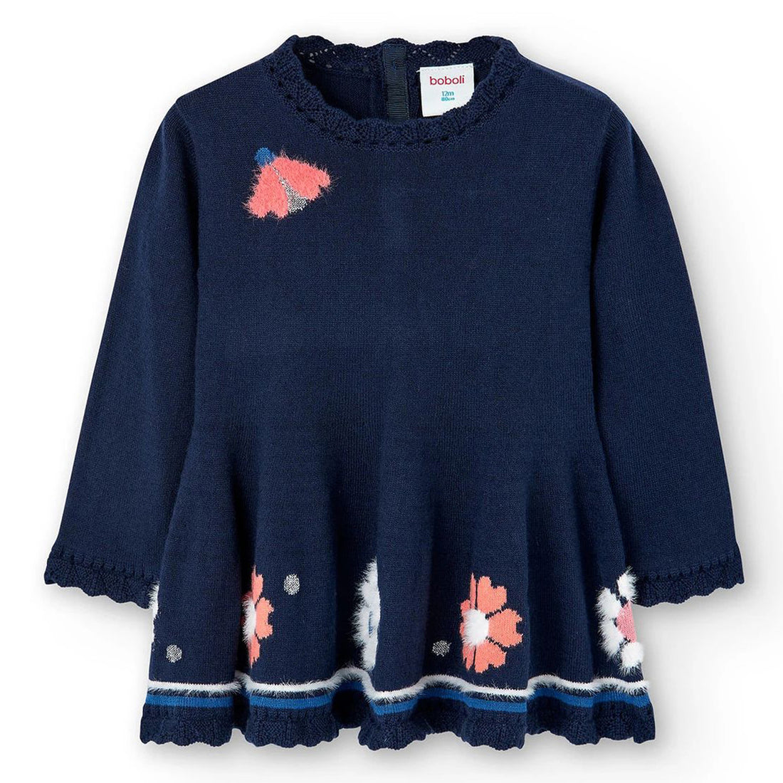 Baby Boboli 701132-9437 heart-shaped dress for girls, navy blue
