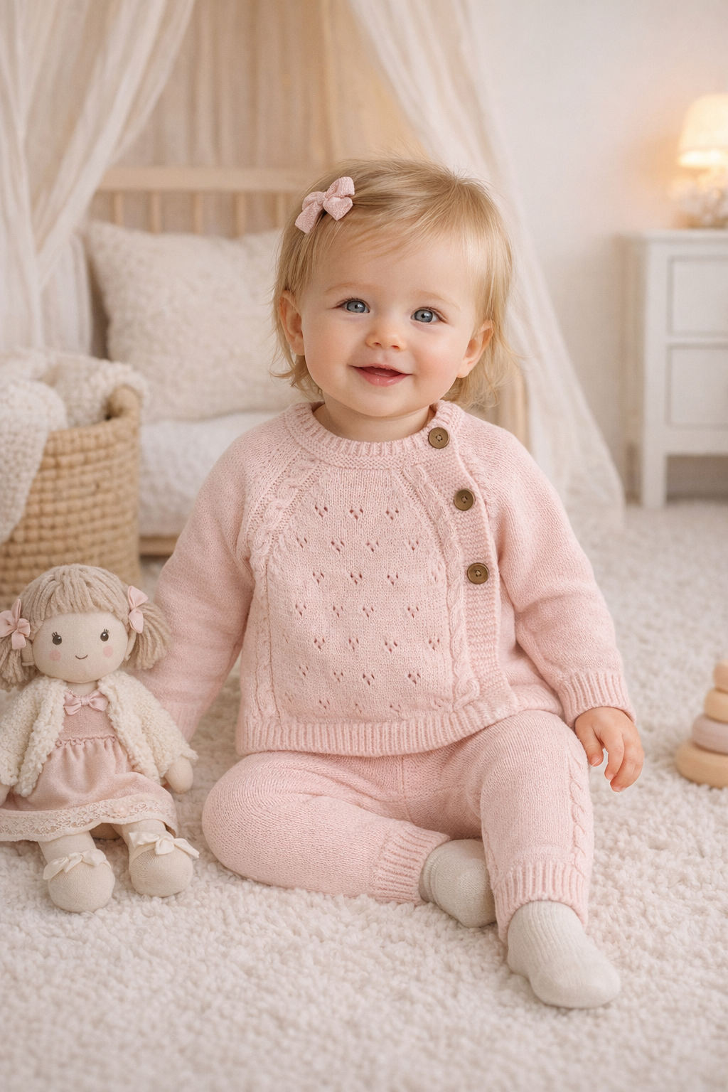 Komplet sweterkowy dziewczęcy różowy Becol 1613-30126-40