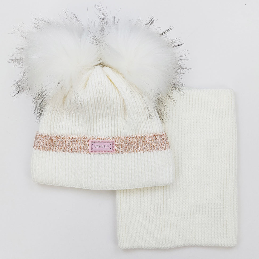 Set of a hat with a scarf with a pompom for girls, cream Ambra J-1-241024-28