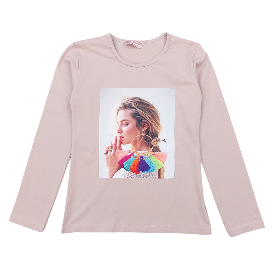 Cotton blouse beads girl beige Your Word 434-161024