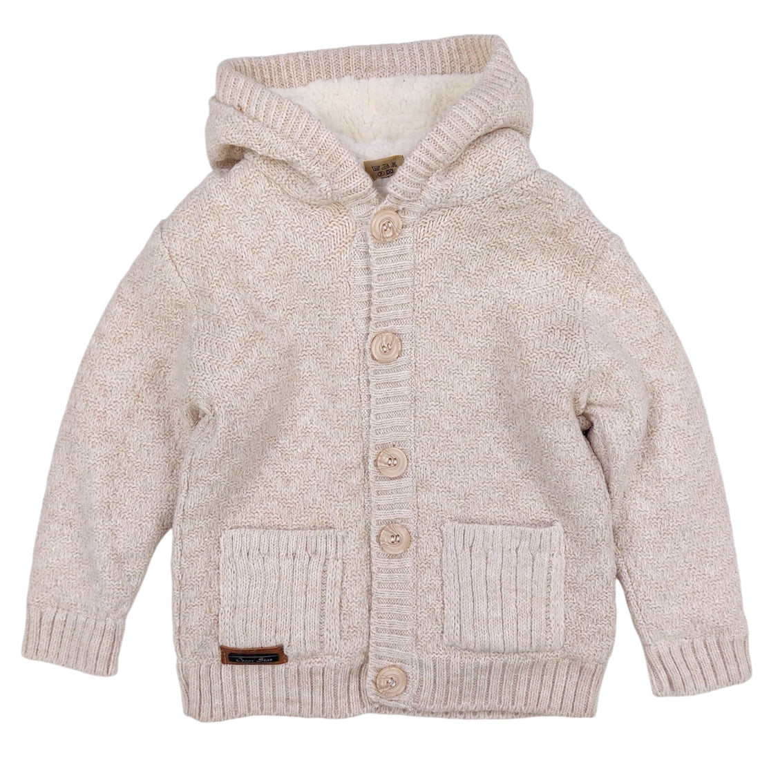 Boy's warm sheepskin sweater with hood beige Oscar Star 8692448-13924
