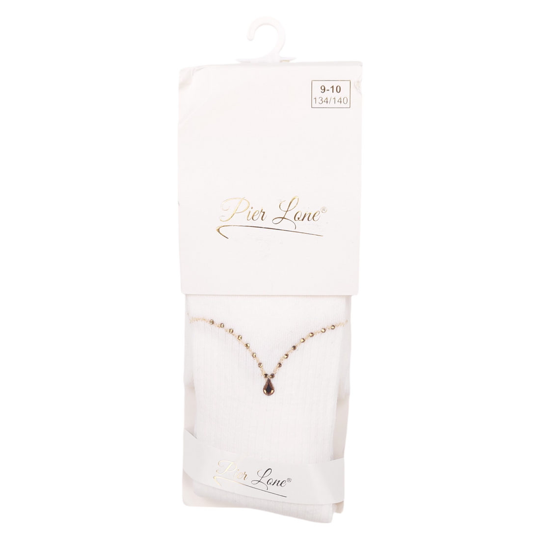 Girls' cotton tights with a bow and ribbed pattern, white, Pier Lone 1419-81025