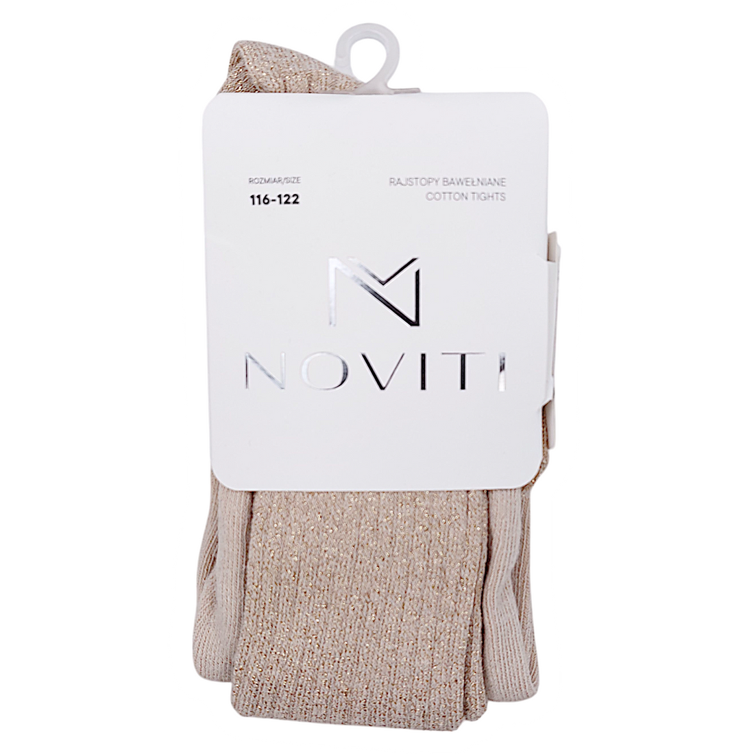 Girls' cotton tights with a bow and ribbed pattern, beige, Pier Lone 1419-81025