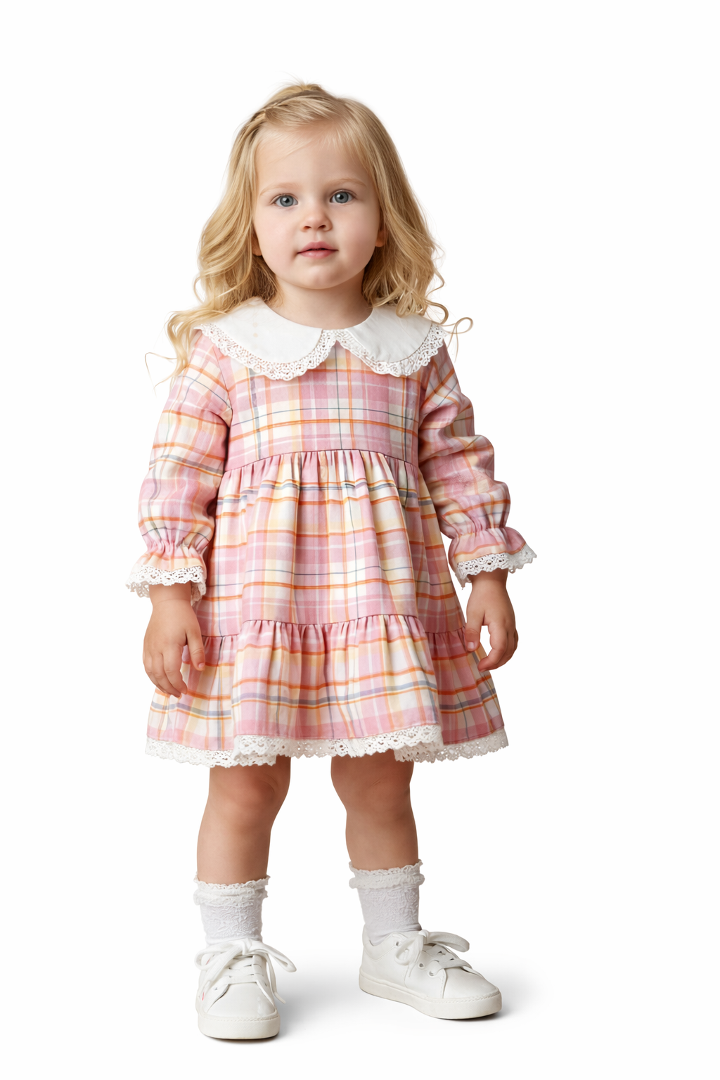 Dziewczęca sukienka z kołnierzykiem w kolorze różowym od Bebedexs Urocza dziewczęca sukienka z kołnierzykiem w...