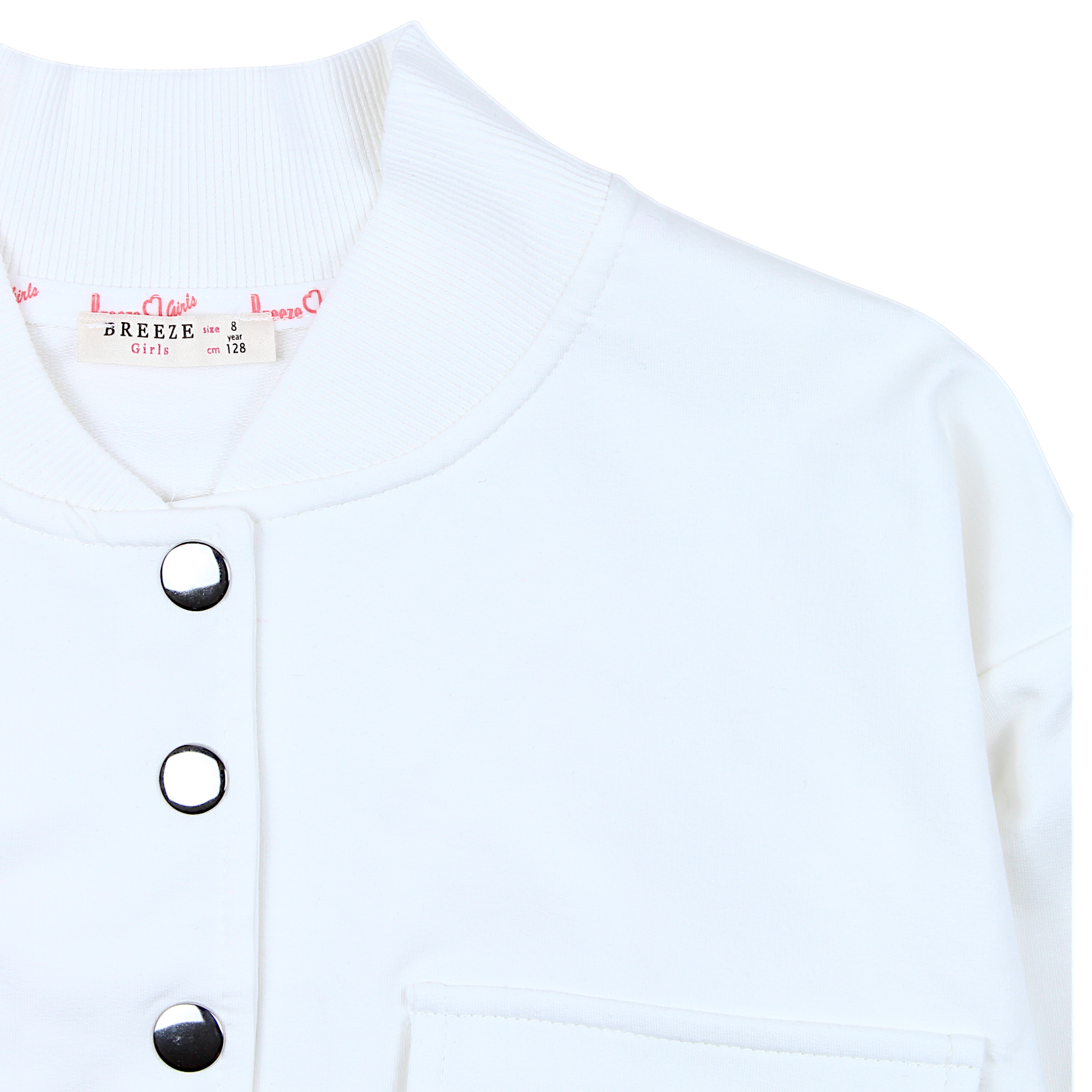 This girly bomber sweatshirt from the Breeze brand is a great choice for every young fashionista for the spring-summer season. The sweatshirt is in a delicate shade of cream, which gives it lightness and elegance. There is a full fastening with decorative snaps at the front, which makes it easy to put on and take off quickly. It is distinguished by two large pockets with a flap placed symmetrically on the right and left side, which not only offer additional space for small items, but also add character to the sweatshirt.
