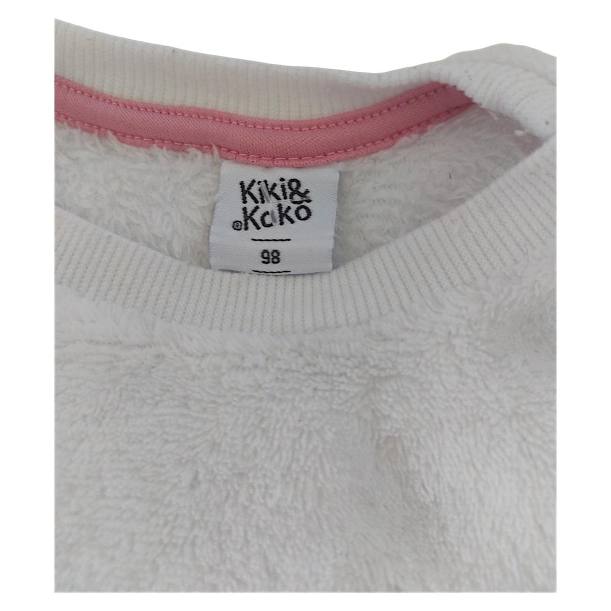 An elegant children's sweatshirt in white , perfect for any little girl. The front is adorned with a charming Unikanik motif made of colorful, shimmering sequins , which catches the eye and adds to its unique charm. The back is smooth for comfort. The sleeves are a comfortable length, and their wide cuffs fit snugly around the wrist. The blouse is easy to wear thanks to a simple clasp that allows for easy dressing. Designed for girls , it's made of materials that are soft and pleasant to the skin. It's sure to become a favorite in your little princess's wardrobe and a perfect choice for everyday wear and special occasions.