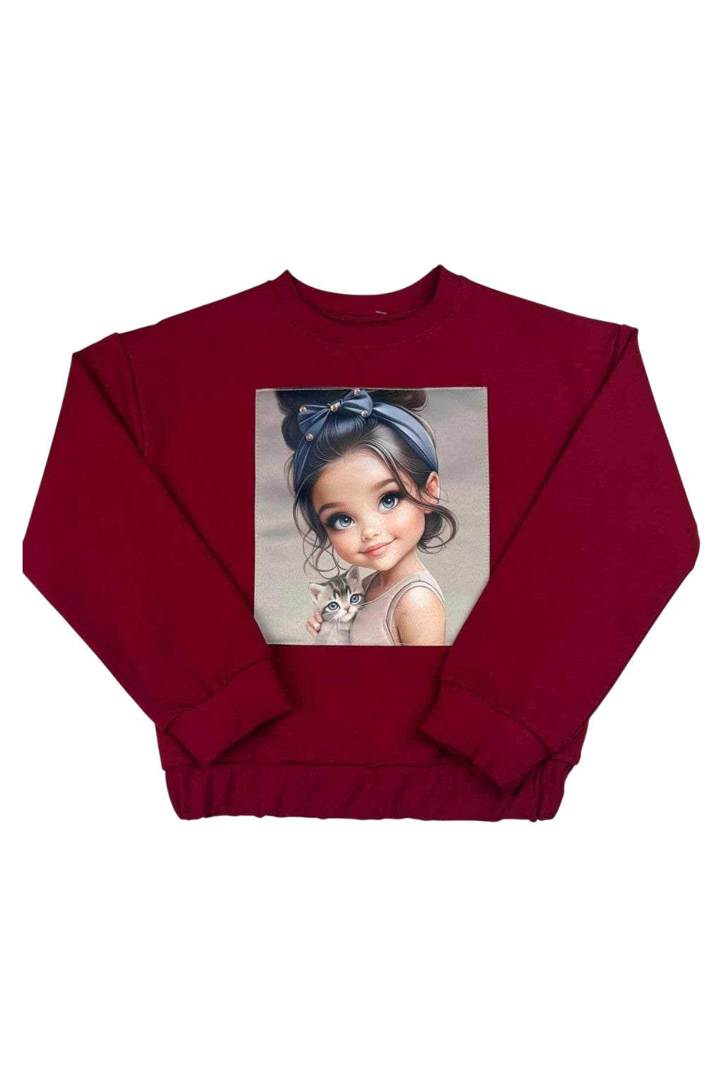 Girls' burgundy sweatshirt with a cat