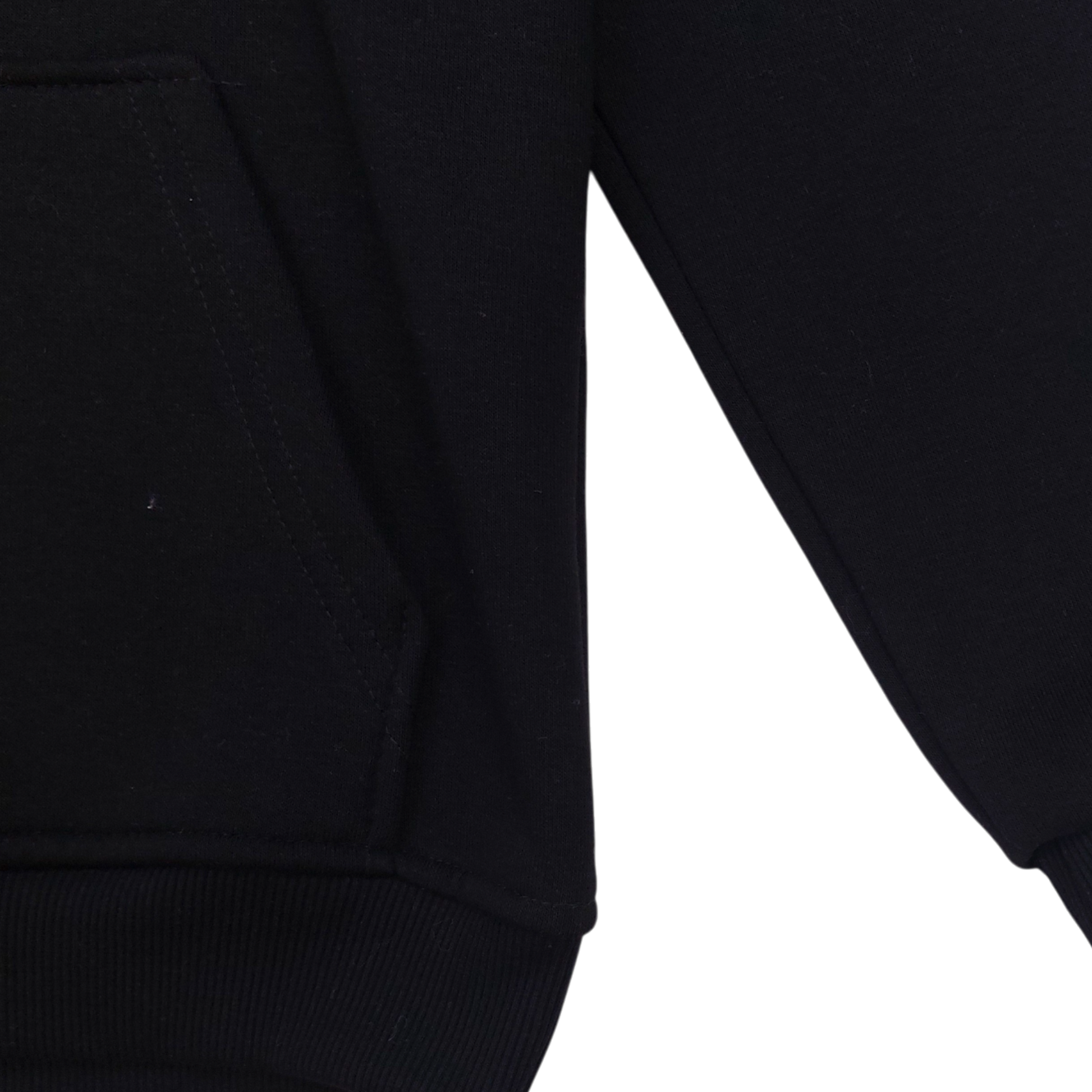 Classic black hooded sweatshirt for boys , perfect for cool days in the autumn-winter season. A model with insulation that provides thermal comfort and a practical kangaroo pocket . Elastic cuffs on the sleeves and bottom of the sweatshirt guarantee a perfect fit and protection against the cold.