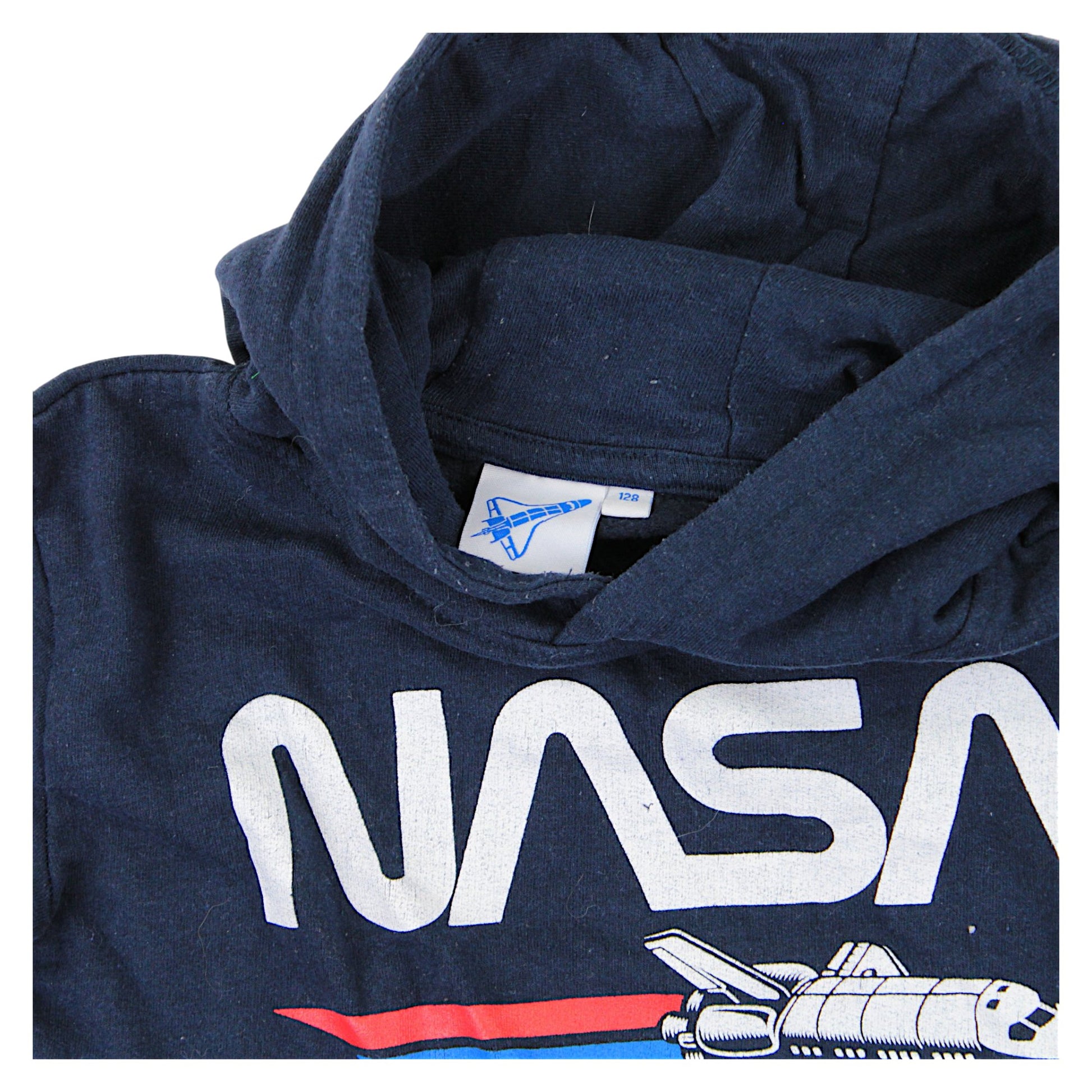 Navy blue hoodie with NASA motif is a perfect choice for little space lovers for the spring-summer season. Made of soft and pleasant to the touch material , it provides comfort of wearing all day long. A large print with the NASA logo and space shuttle graphics on the front gives it a modern and cosmic character. Contrasting red stripes on the sleeves add a sporty style, and the long sleeve and elastic cuffs on the sleeves and at the bottom of the sweatshirt ensure a perfect fit and protection against the wind. The practical hood protects against cold and wind, ensuring comfort in every situation.