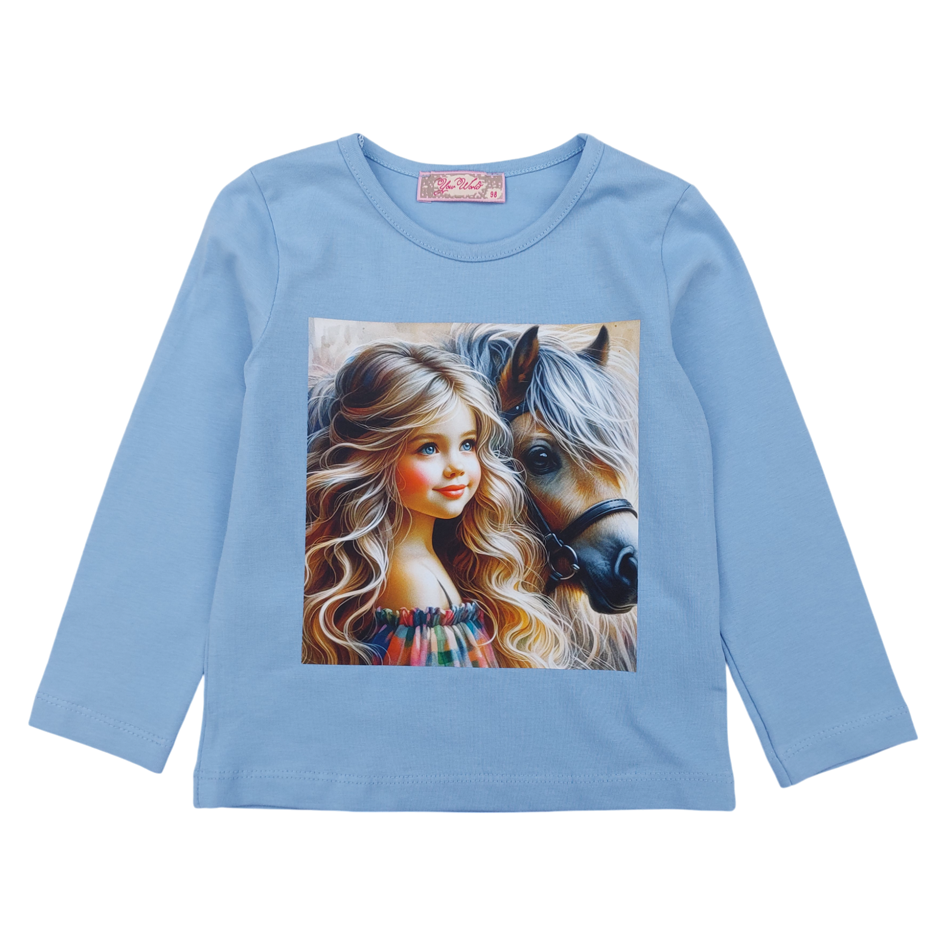 Cotton blouse with horse for girls blue Your Word 5462-191024-35