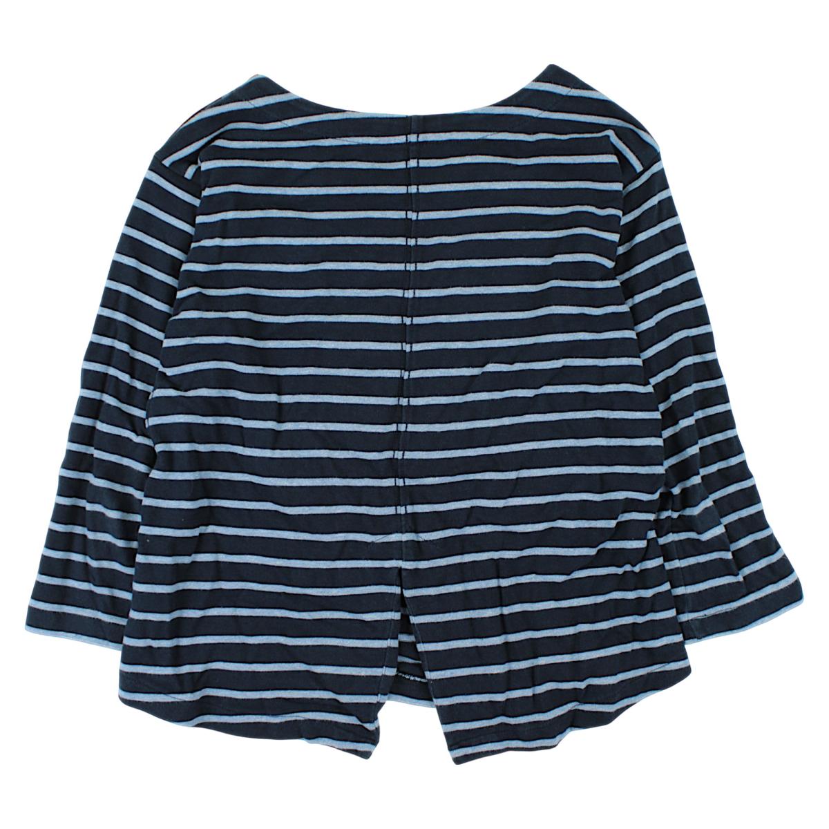 We present a stylish blouse for girls that will be the perfect everyday choice. The blouse is navy blue with subtle blue stripes, giving it a fashionable look. It has long sleeves and a round neckline for comfort. Practical buttons on the shoulders make it easy to put on and add a touch of originality. The blouse is slightly longer in the front and slightly shorter in the back, creating a unique style. The material is soft to the touch, ensuring all-day comfort. Designed for girls, it's sure to delight any little fashionista. This blouse can be worn both everyday and for special occasions, making it a great addition to a child's wardrobe.