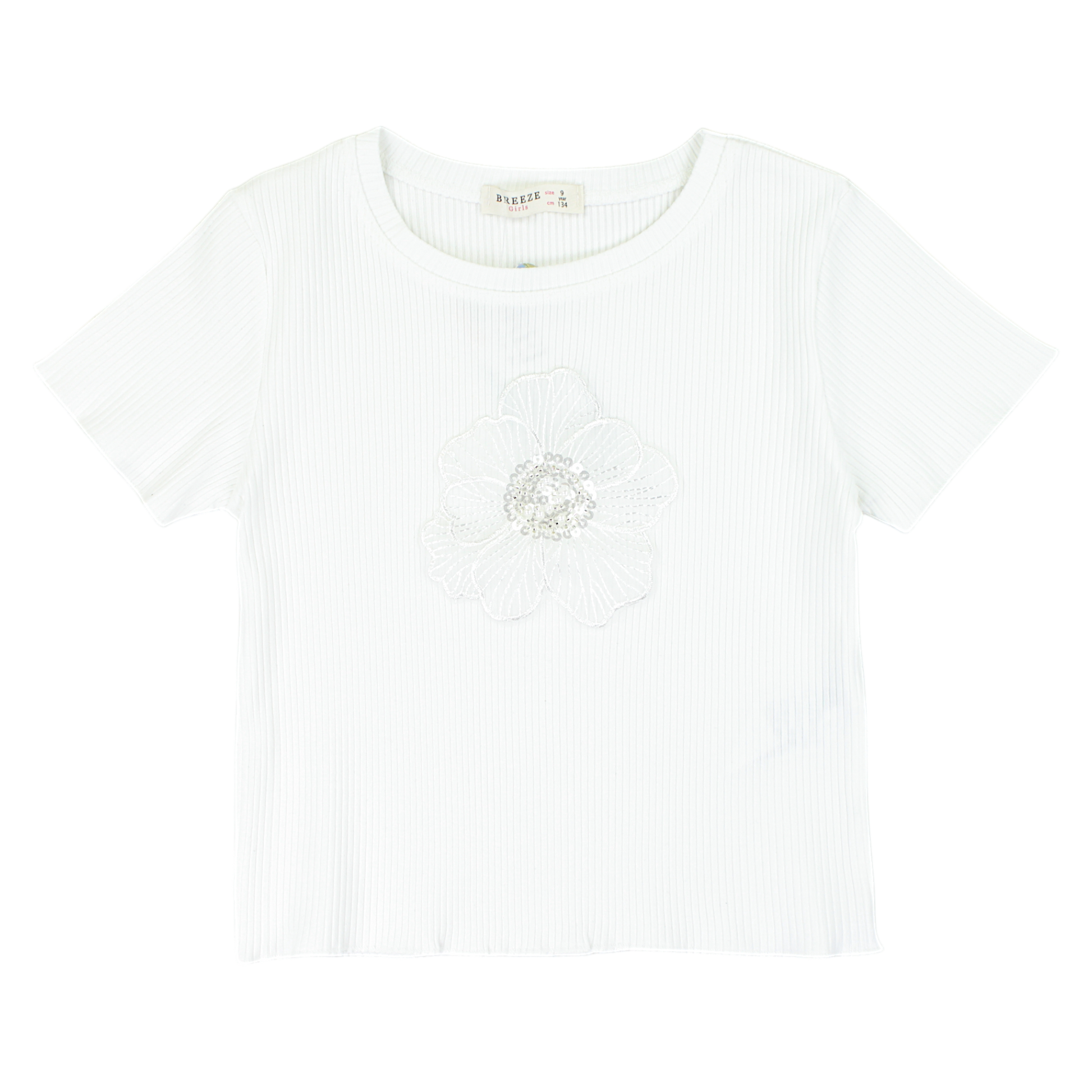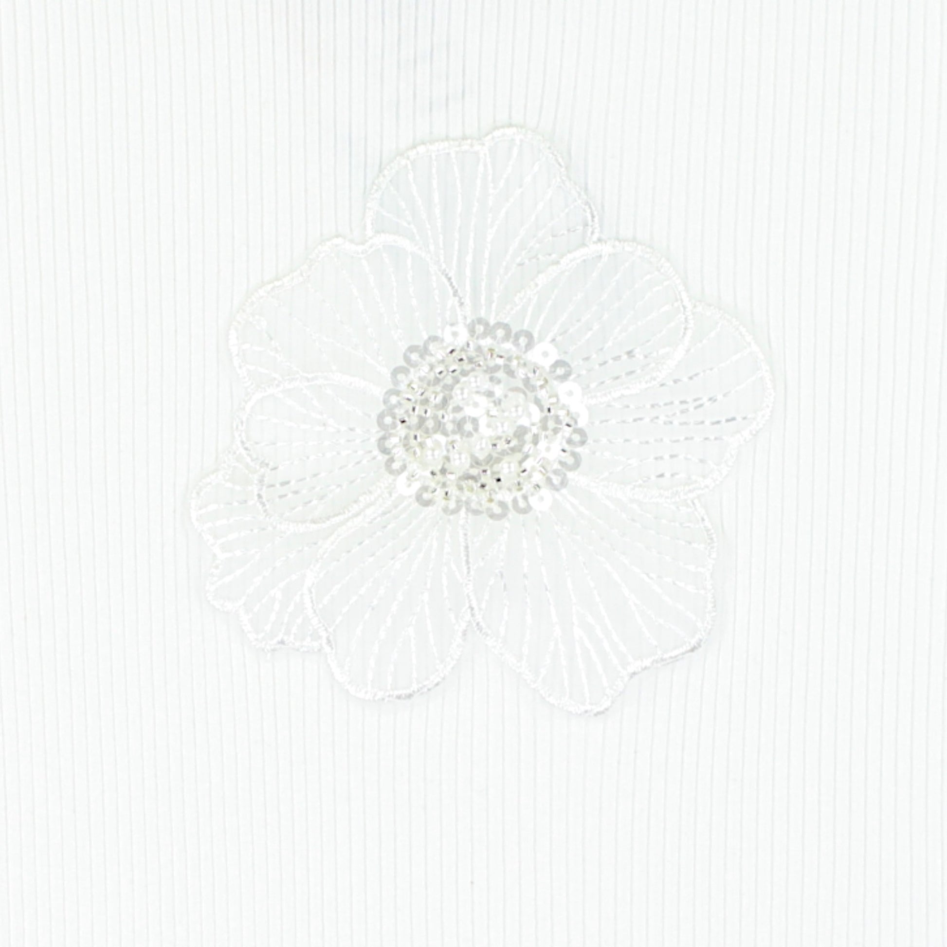 The greatest decoration of this fashionable girl's blouse Is embroidered flower with pearls and sequins , which gives it a unique, elegant character. Delicate embroidery It blends beautifully with the ribbed texture of the material, creating a stylish and girly look.