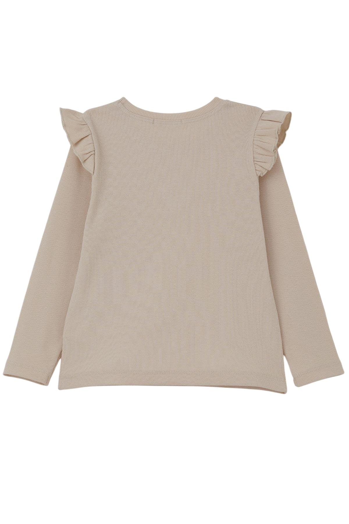 Dziewczęca bluzka z prążkiem i motywem myszki w kolorze beżowym