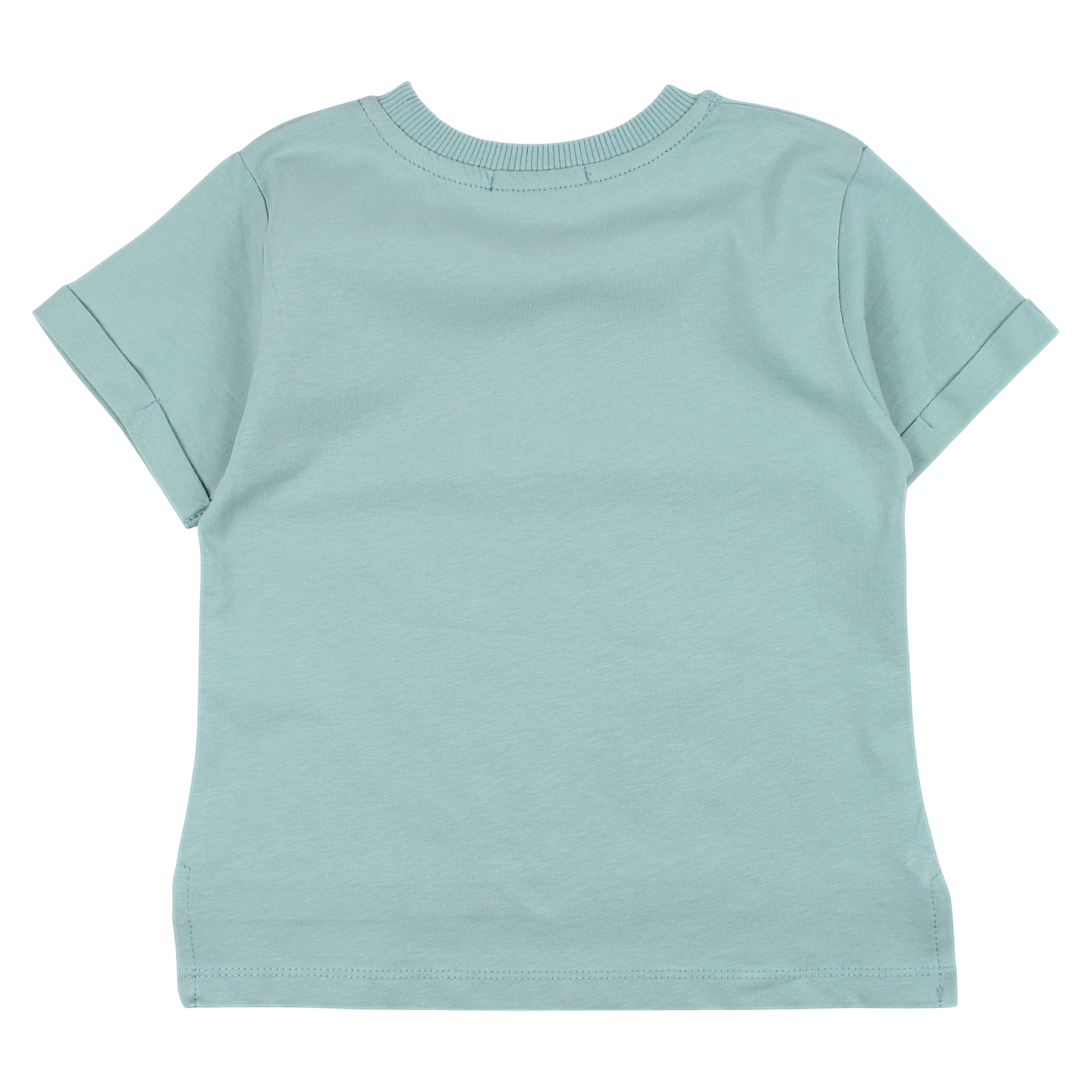 This boy's ship-themed blouse is a great choice for little sailors for the spring-summer season. Made of high-quality cotton , the blouse provides comfort during outdoor play. It is mint in color , which adds freshness and modernity to the styling. The round neckline and short sleeves make it ideal for warmer days. The front of the blouse has a decorative print depicting a ship, which will surely appeal to little explorers. The back of the blouse is one-colored, simple and smooth, which allows for easy composition with other elements of the wardrobe. The lack of pockets and fasteners increases the comfort of wearing. The product is dedicated to boys and provides full freedom of movement. It is perfect for everyday outings, as well as for holiday adventures. Thanks to its solid workmanship, the blouse maintains its shape and color even after many washes, which makes it a practical choice for parents.