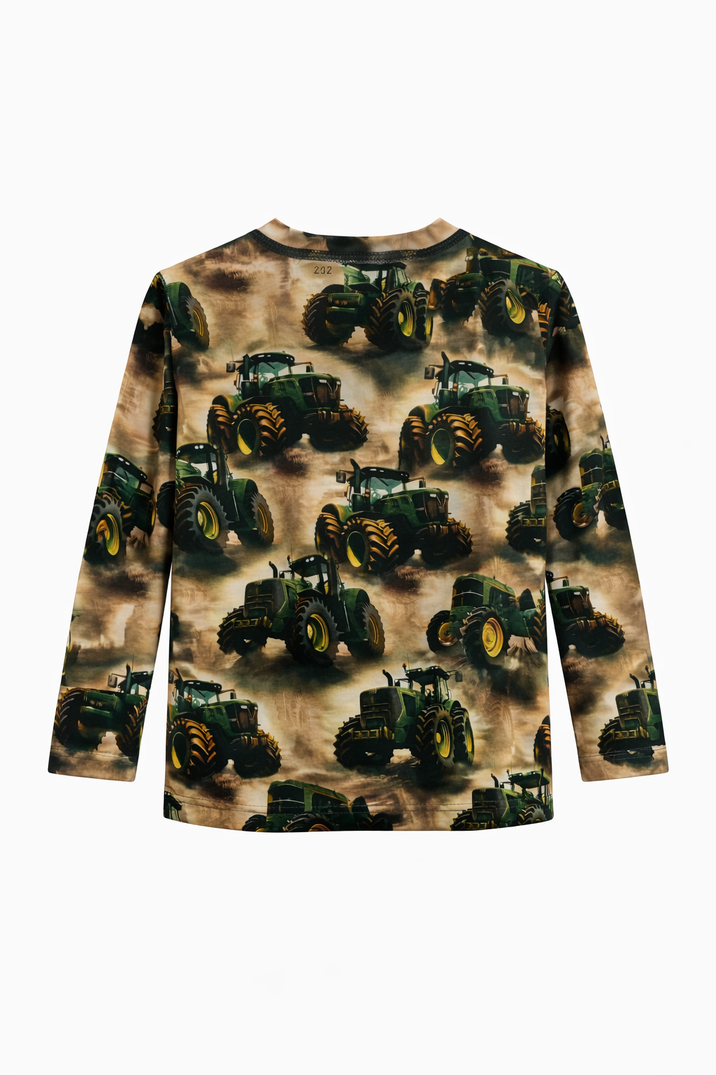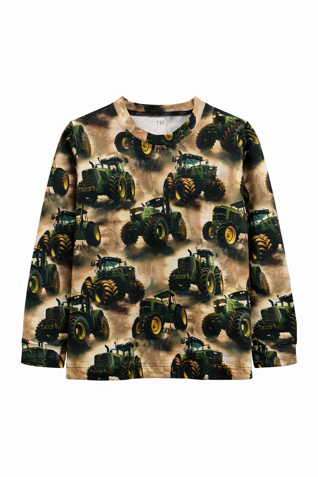 Chłopięca bluzka z nadrukiem traktora w kolorze beżowym