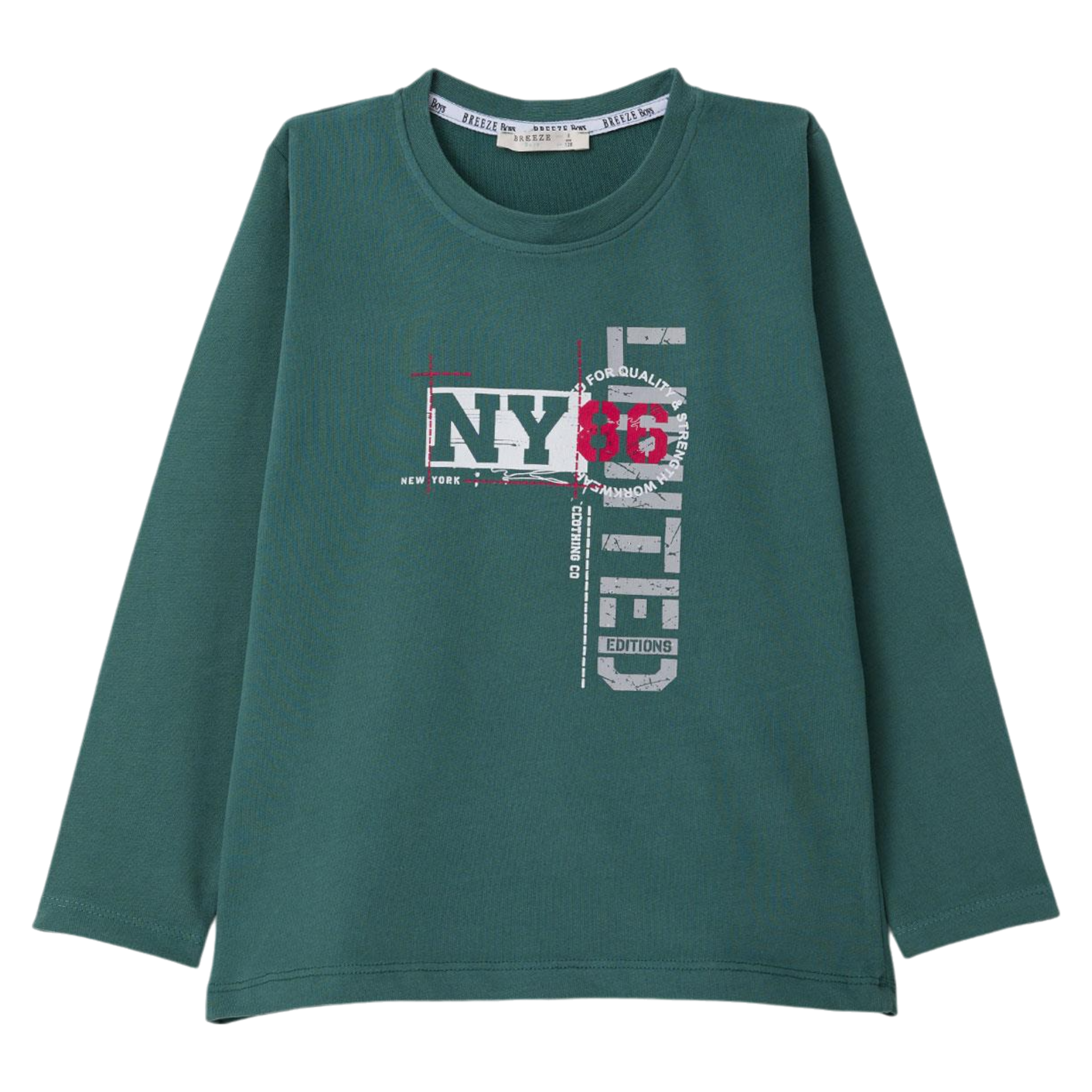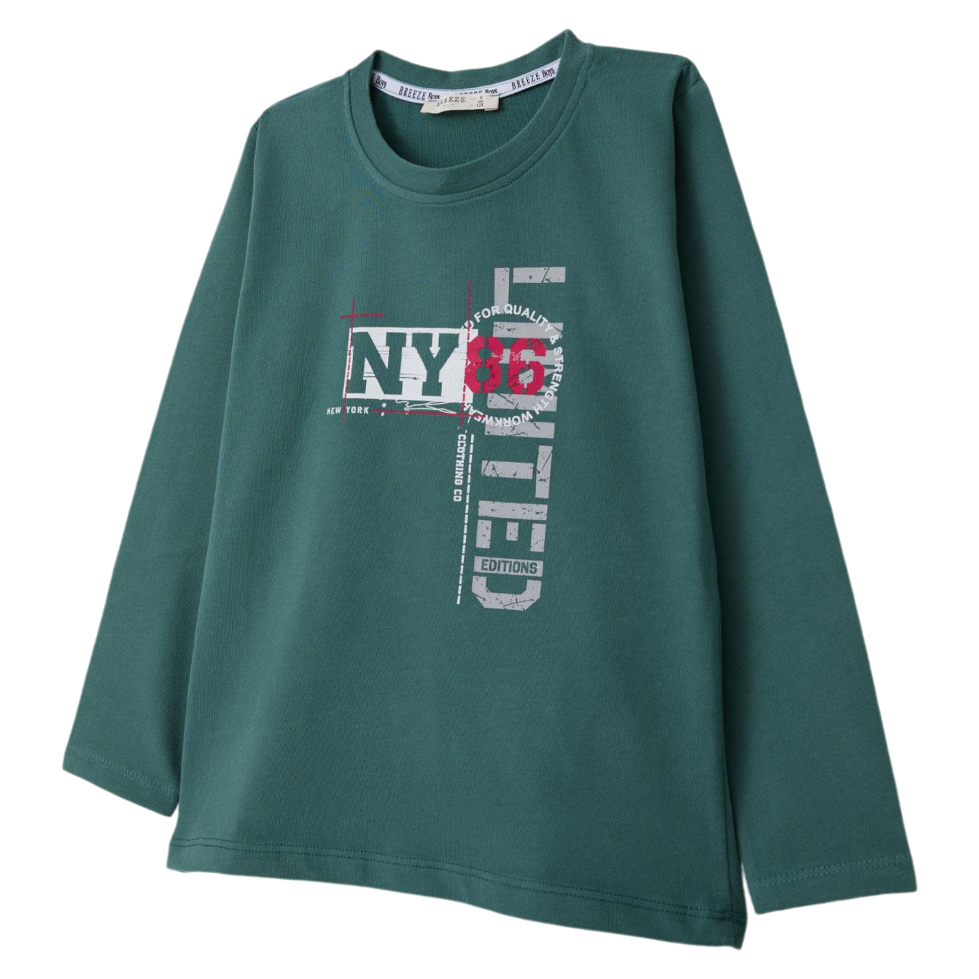 Stylish, warm boy's blouse from the autumn-winter collection, in navy blue. The front is decorated with a dynamic "NY 86 LIMITED EDITION" print. Long sleeves and no pockets or fastenings make the blouse comfortable for everyday wear. Made entirely of soft and breathable cotton , it provides comfort and warmth for every day.