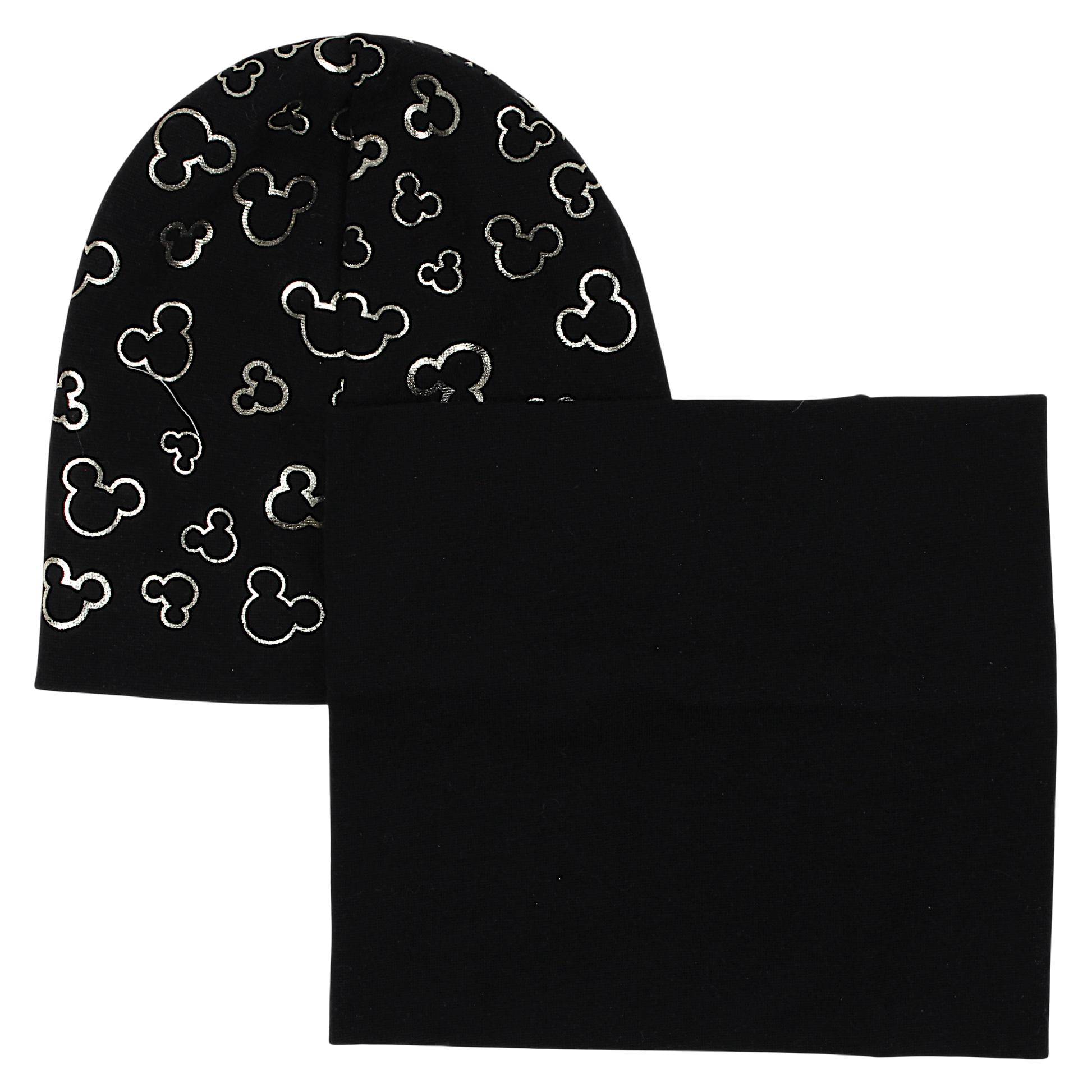 A stylish set of a hat with a scarf for children is a great choice for colder days. The hat is made of soft and flexible material that perfectly adapts to the child's head. Decorated with a fashionable pattern in the shape of a Mickey Mouse head , it attracts attention and adds charm to any styling. The scarf provides effective neck protection against wind and cold. The set has no pockets, fasteners or additional elements - it is simple and convenient to use.