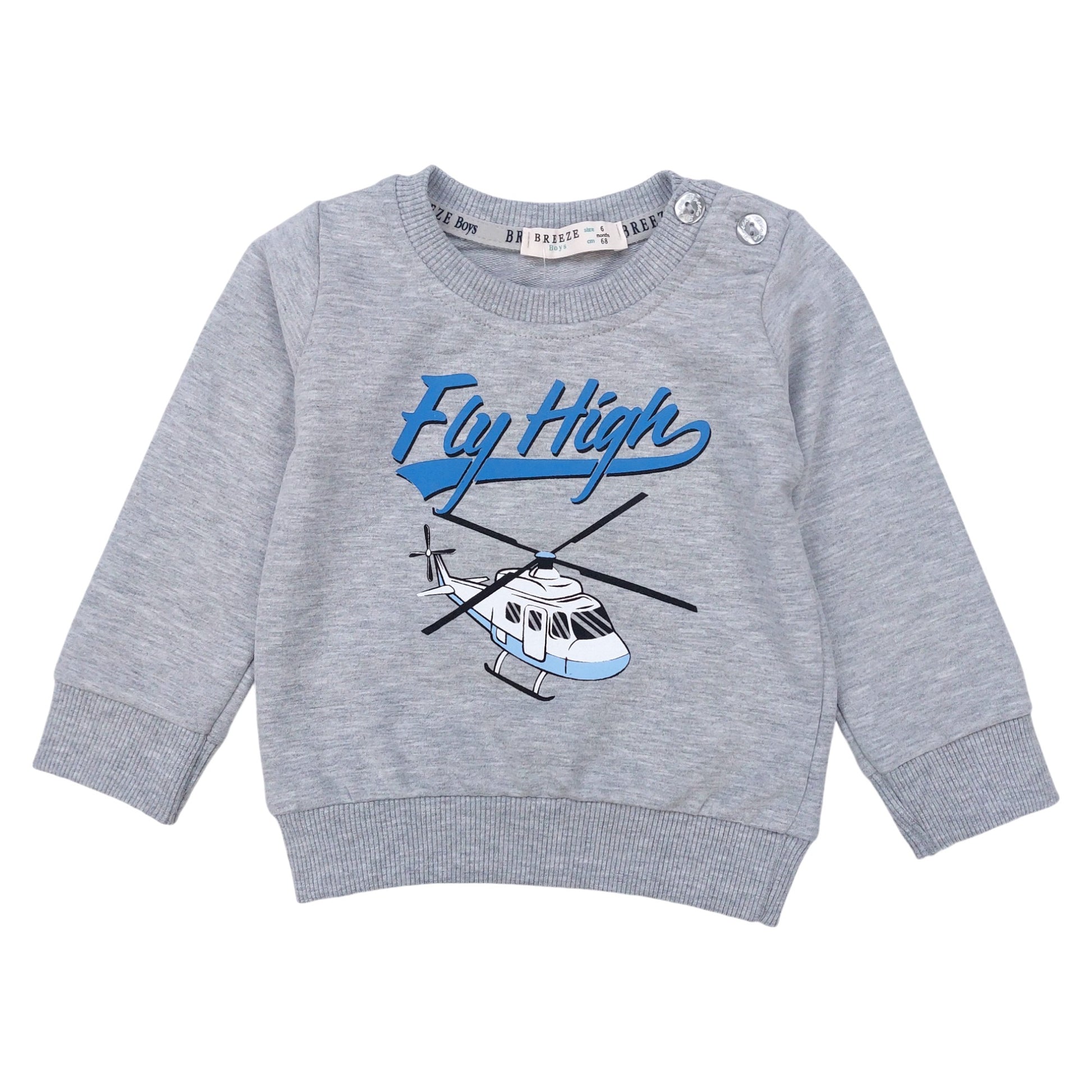 Discover the unique cotton tracksuit for boys by Breeze – the perfect choice for active little ones on colder days. This stylish set in grey impresses with its charming design with a helicopter motif and the inscription "Fly High", which adds a child's imagination and energy to the whole.