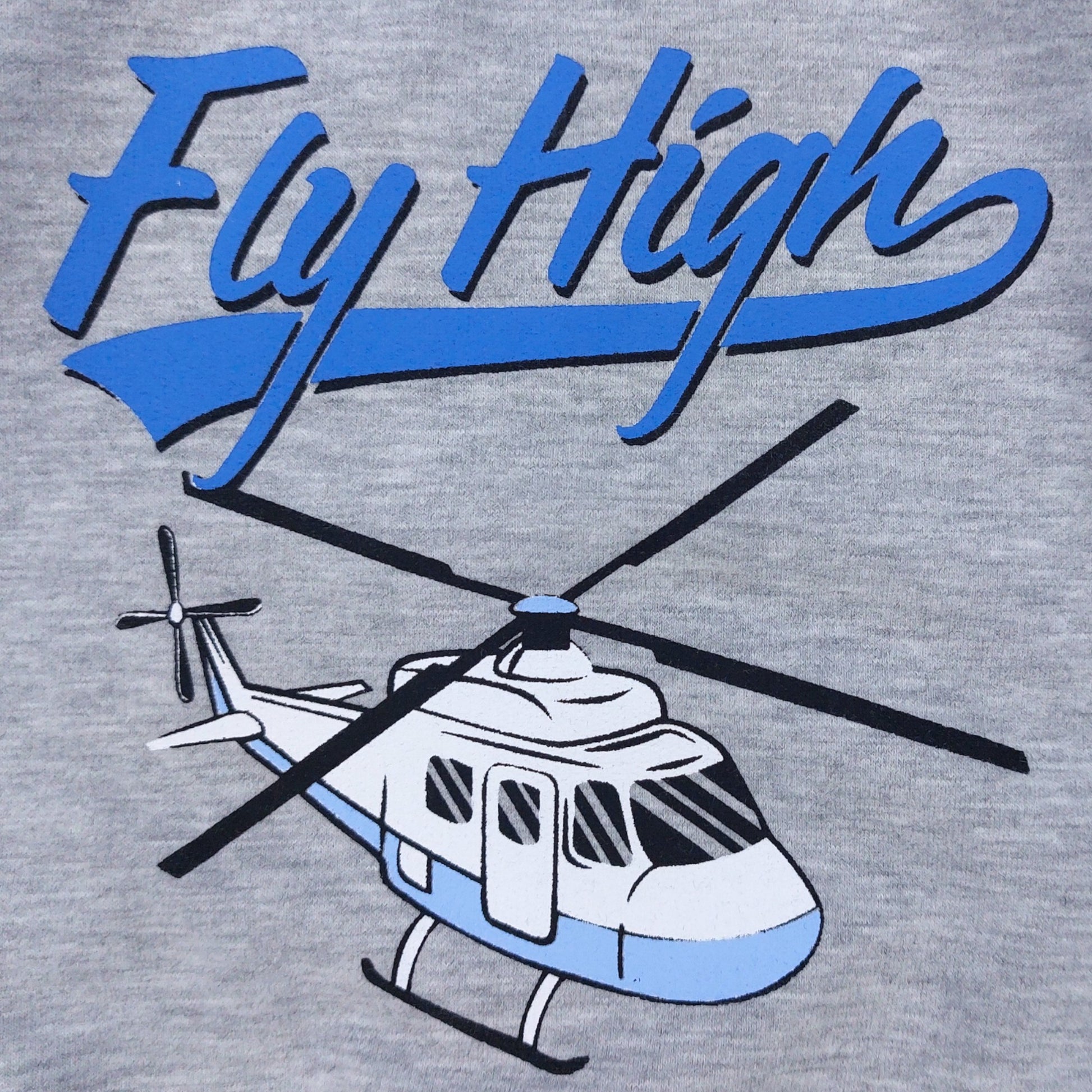 The sweatshirt has an attractive helicopter graphic and the inscription "Fly High", which will certainly attract the attention of young adventure lovers. It is an ideal proposition for boys who dream of sky travels, and the helicopter motif introduces an element of fun and inspiration. The sweatshirt is equipped with comfortable fastenings on the shoulder, which makes it easy to put on and take off.