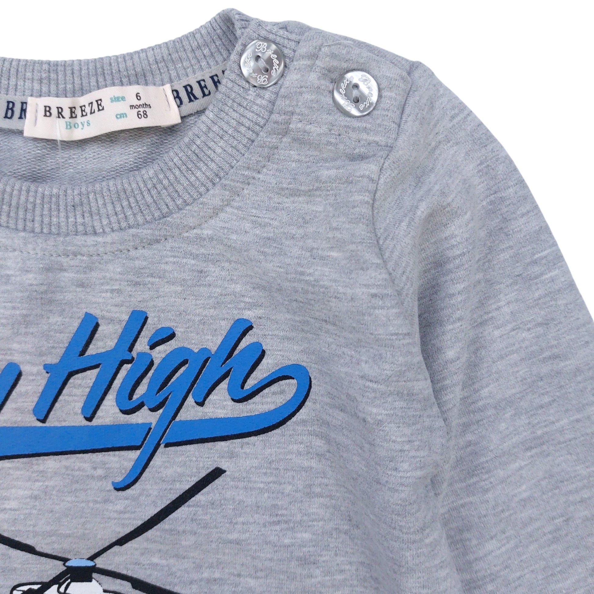 Boys' Breeze tracksuit 20630-30924 with a helicopter motif, made of soft, elastic cotton jersey. Blouse with "Fly High" graphic and comfortable trousers with elastic waistband and pockets. The perfect set for colder days.