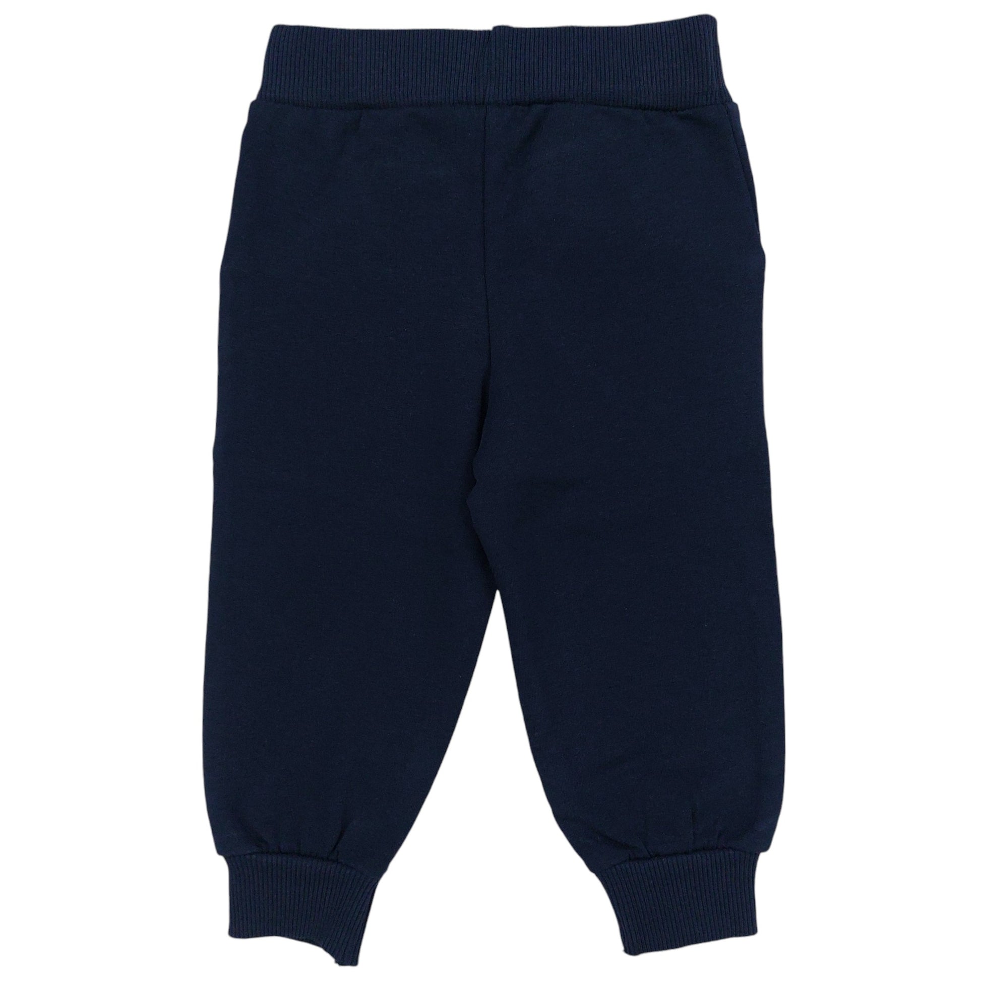 The navy blue sweatpants are equipped with pockets, which adds functionality. A comfortable elastic waistband and cuffs on the legs guarantee comfort and freedom of movement.