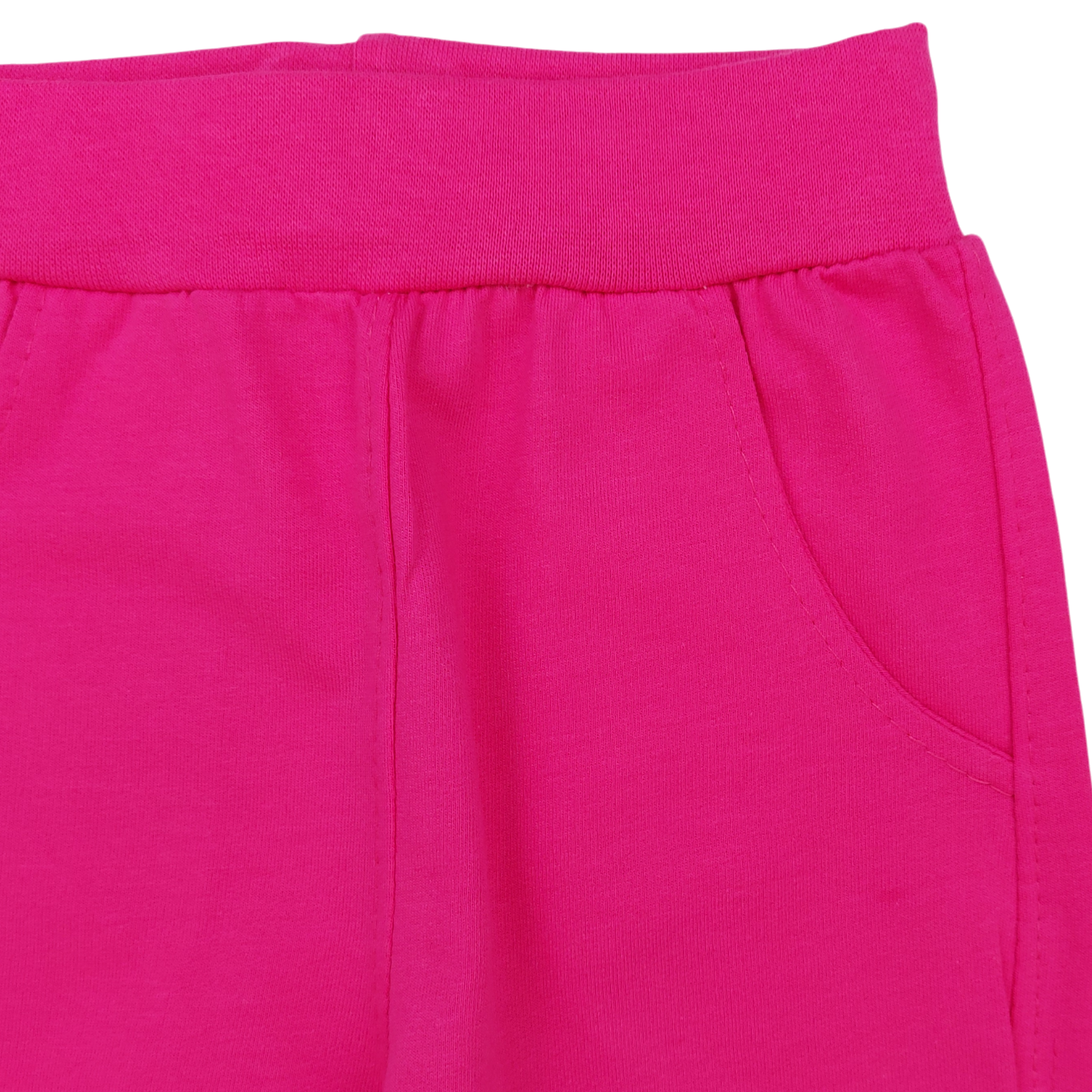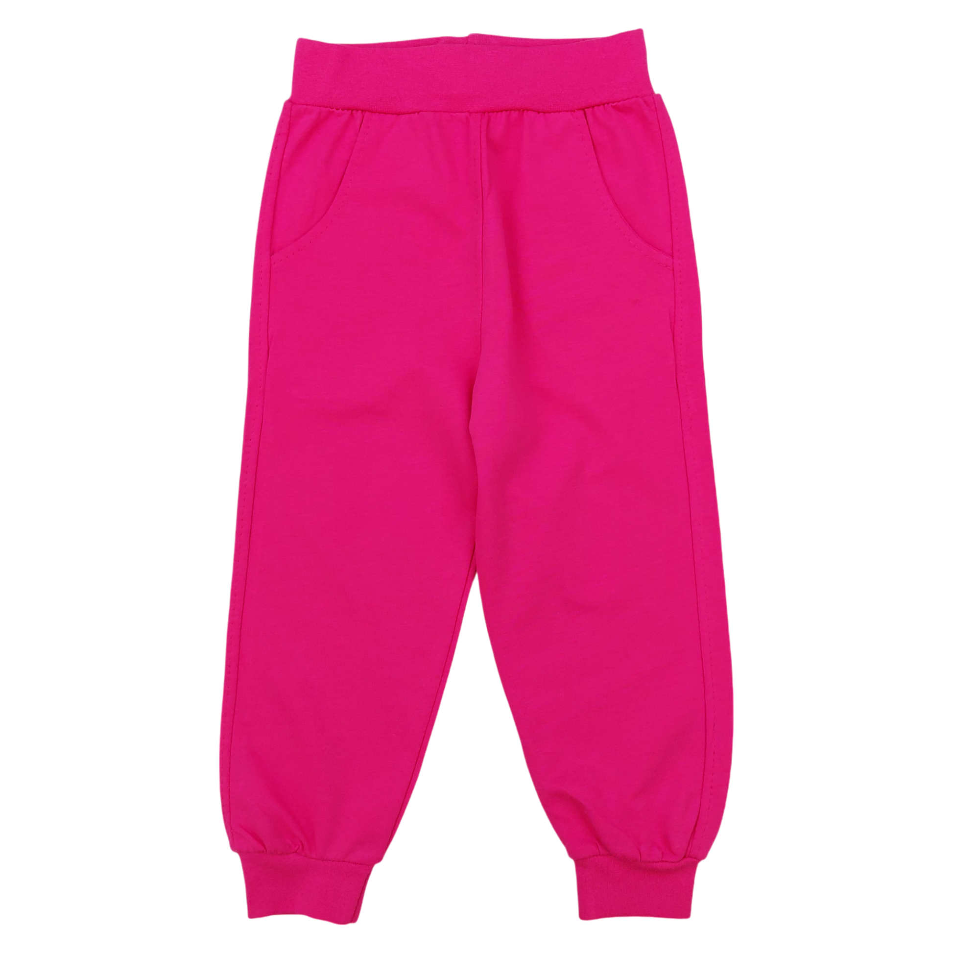 Trousers in a bold, intense fuchsia color are the perfect complement to the set. Their sporty cut and elastic cuffs on the legs and waist guarantee comfort and freedom of movement. Thanks to practical pockets, your little one can always have their favorite trinkets with them - an ideal solution during walks or visits to friends. The intense color of the trousers perfectly matches the floral motif of the sweatshirt, creating a harmonious and fashionable set.