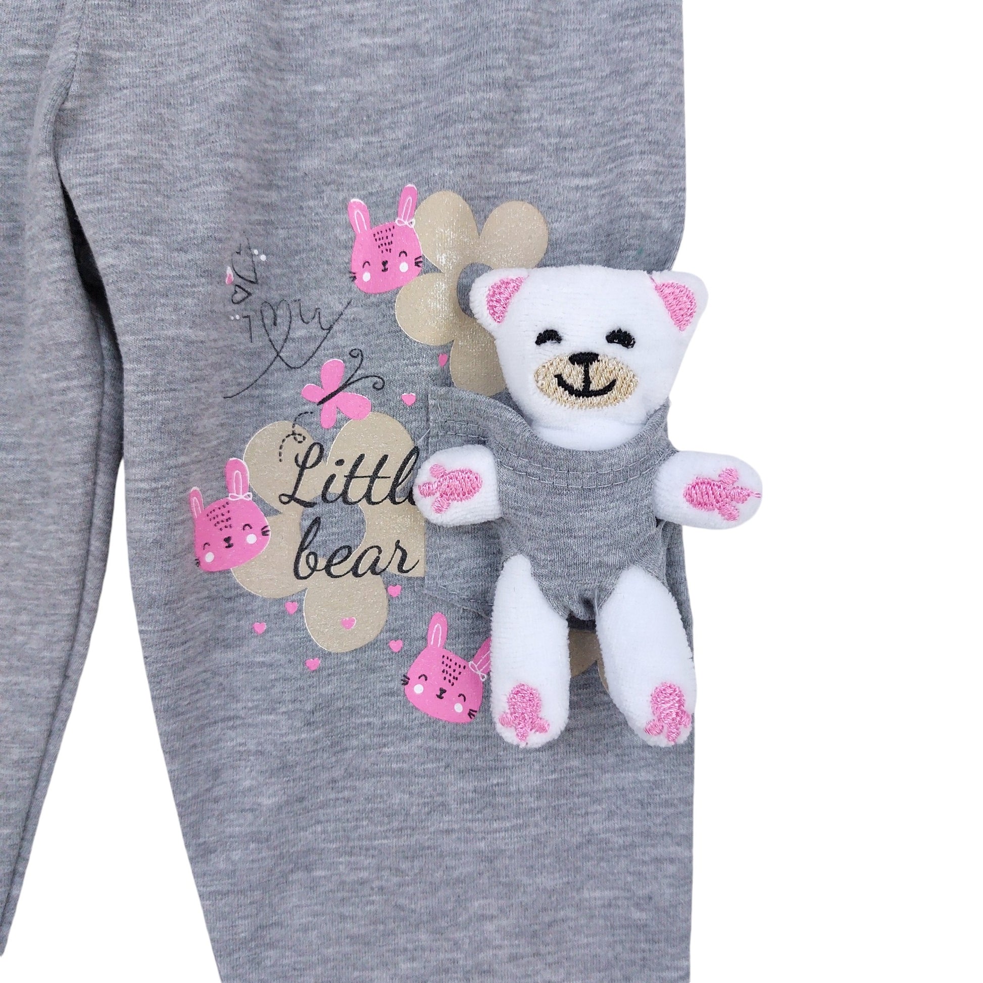Girls' leggings Timi 44171-10924 GKMOD from the autumn-winter season in grey. An additional charming element is a bear mascot placed in a small pocket, which adds a unique character and will delight every little girl.