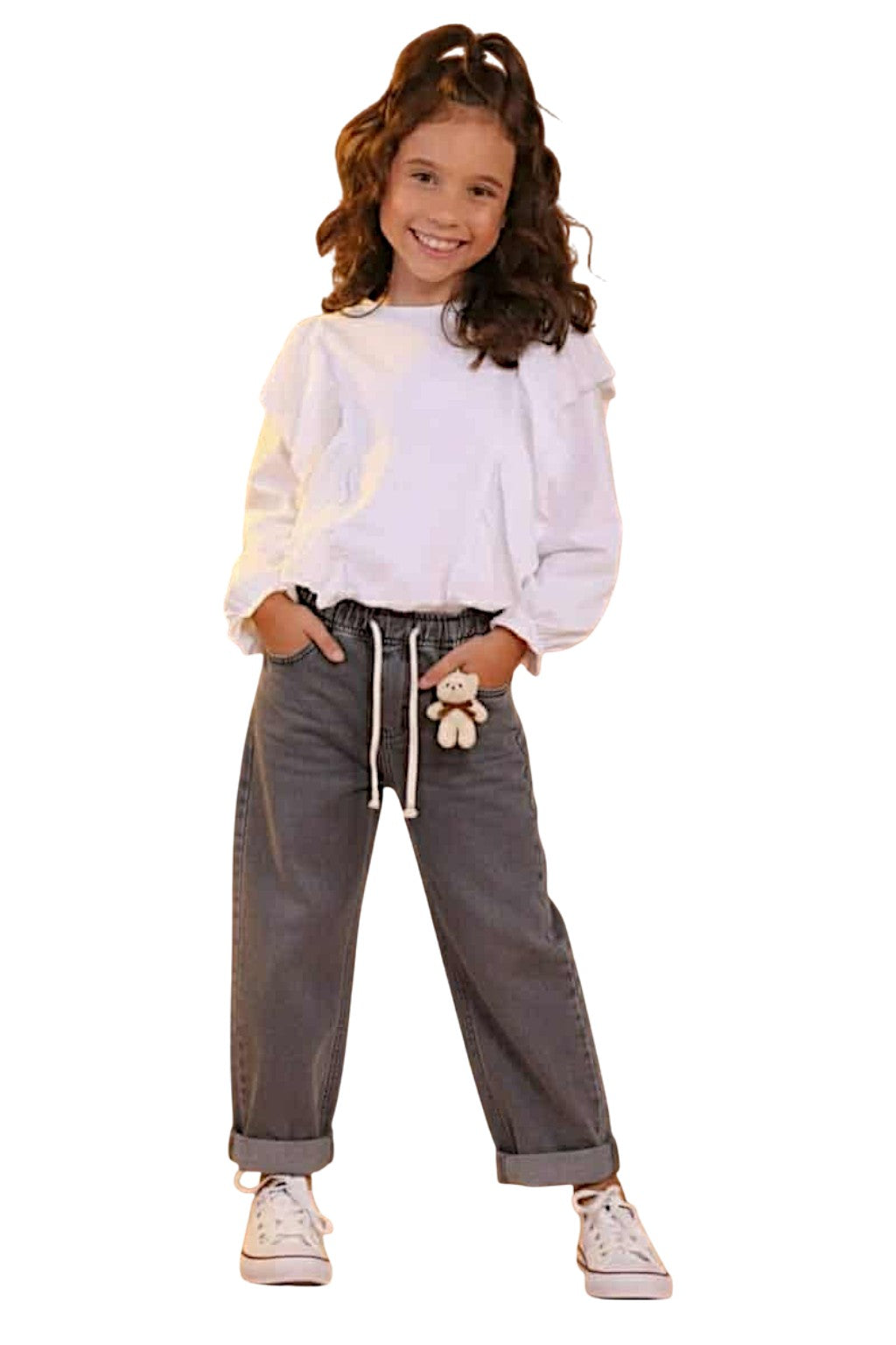 Przedstawiamy urocze jeansowe kuloty dla dziewczynek w eleganckim czarnym kolorze. Te stylowe spodnie zostały ozdobione subtelnym motywem misia, dodającym im wyjątkowego uroku. Wykonane z miękkiego i wytrzymałego materiału, zapewniają komfort noszenia przez cały dzień. Kuloty posiadają praktyczne kieszenie oraz elastyczny pas, co ułatwia ich zakładanie i dopasowanie do sylwetki. Idealne na sezon jesień-zima, doskonale komponują się z różnymi stylizacjami, dodając im modnego akcentu.