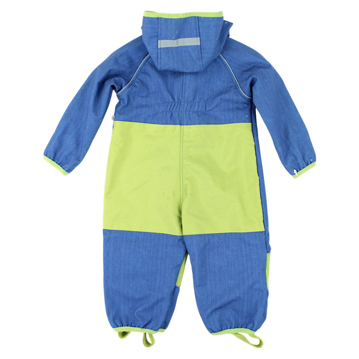 We present a boy 's jumpsuit made of high-quality materials. A zipper at the front makes it easy to put on and take off, and it also has a cover for comfort. The jumpsuit is blue with green accents, giving it a fashionable look. The long sleeves are finished with cuffs , ensuring they stay in place and preventing your child from getting in contact with cold air. The back of the jumpsuit features a short fabric panel that is also functional. This product is ideal for spring and autumn outings thanks to its warm interior. The entire piece is made of a highly abrasion-resistant fabric, which is essential for children's clothing. The jumpsuit has no pockets, allowing for easy play and freedom of movement, which is essential for everyday activities. An excellent choice for an active boy !
