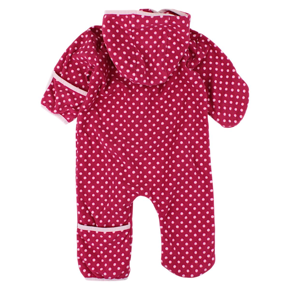 We present a unique jumpsuit for girls, perfect for cold days. Made of soft and pleasant-to-touch material, available in a beautiful pink color and decorated with white polka dots . The front of the jumpsuit features a full zipper for easy wear. The hood protects your little one from cold winds. Elasticated sleeves ensure freedom of movement . The back of the jumpsuit is smooth, adding to its charm. Practical pockets are located on the sides, perfect for storing little treasures. This product is designed for girls and is a perfect choice for active little ones who value style and comfort.
