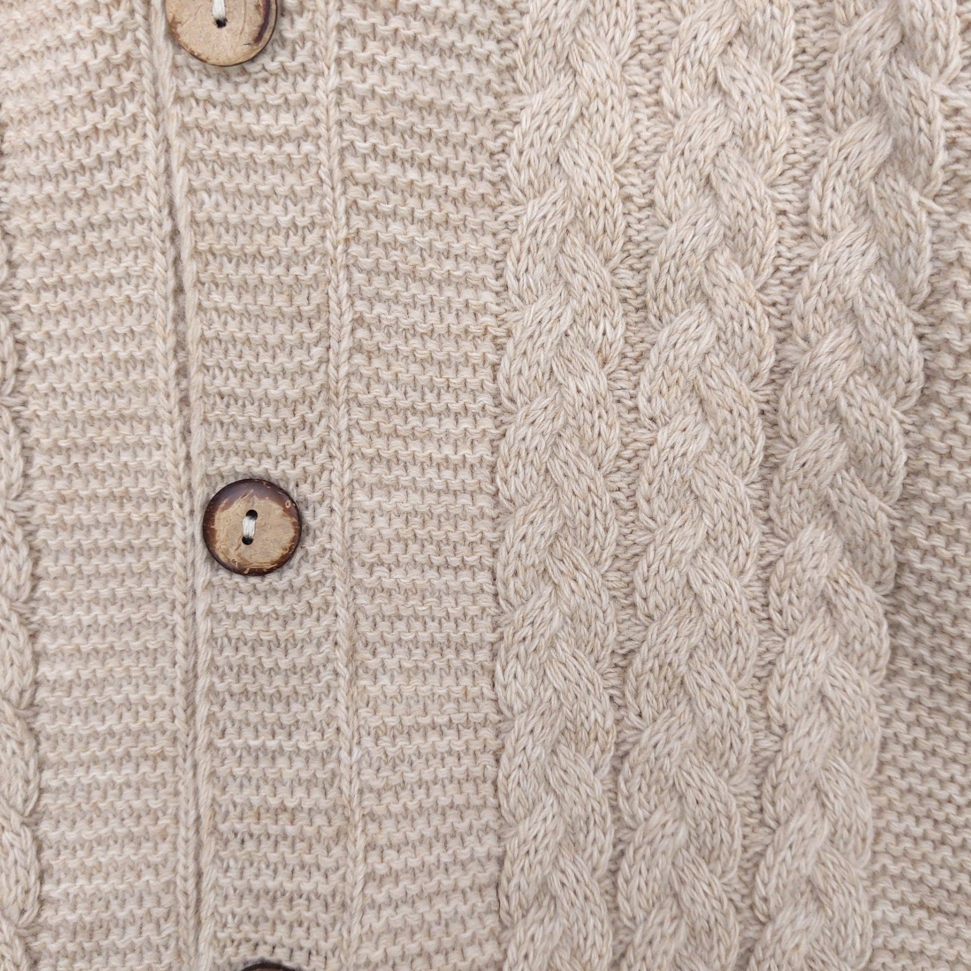 The main advantage of this wool overalls is its practicality and careful workmanship. The jumpsuit is fastened with wooden buttons, which not only have a decorative function, but also facilitate quick putting on and taking off. The outer knitted structure is distinguished by a stylish braid weave, which gives the whole thing an elegant look. An additional advantage is the hood with cute ears, which adds a childish charm to the jumpsuit, and at the same time provides additional warmth during walks.
