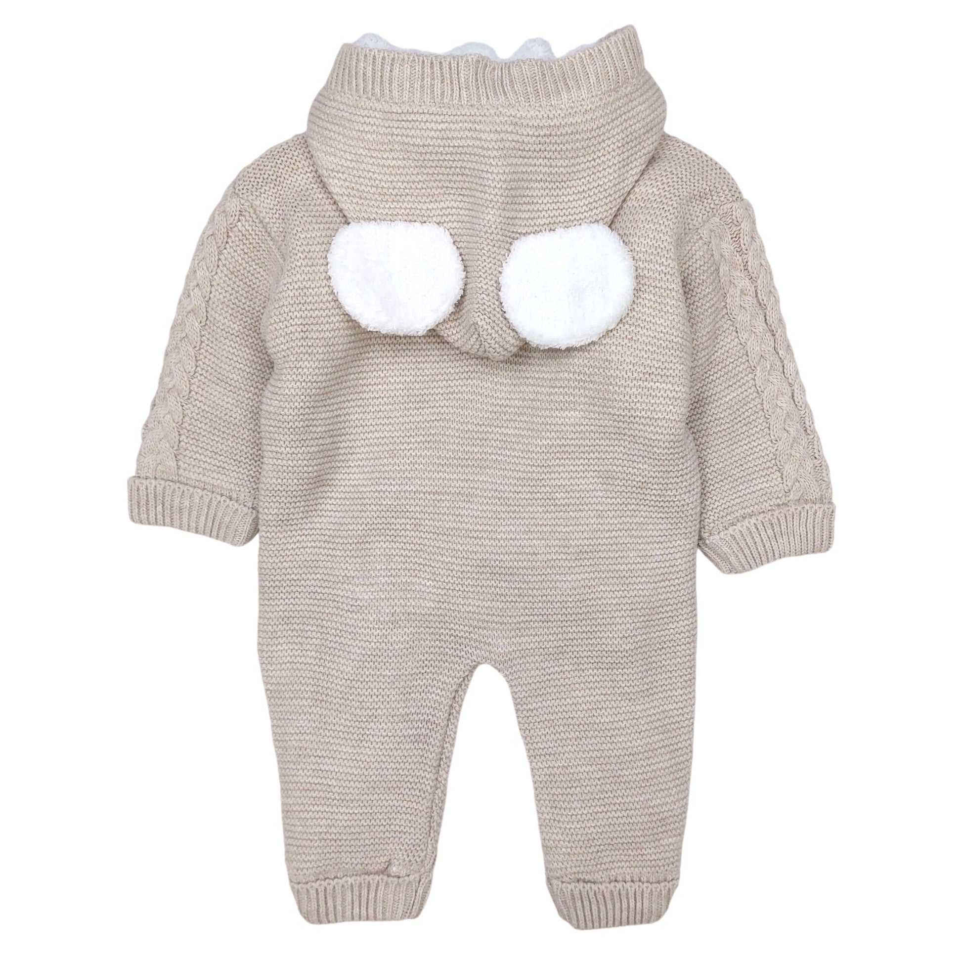 Warm wool overall for boys Three Star 236-71024 from the autumn-winter season, in beige. Fastened with buttons, with a charming, fur lining and a hood with funny ears, perfect for cold days.