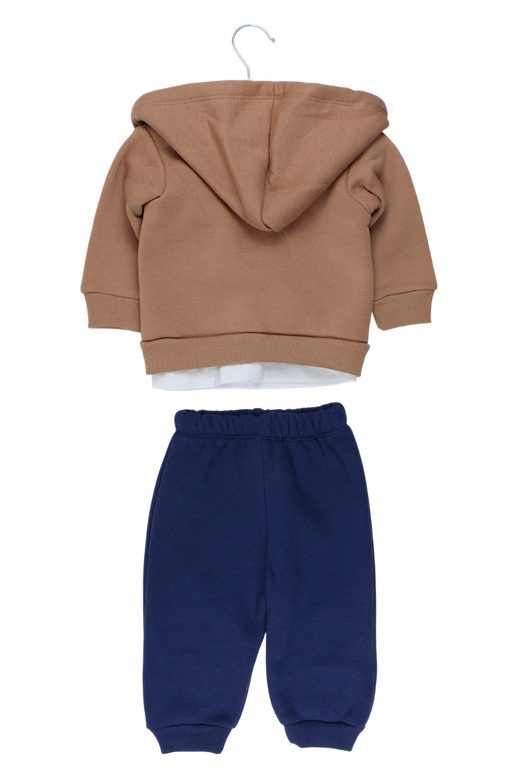 We present a unique three-piece boys' set , perfect for the cooler days of the fall and winter season. This beige set includes a stylish sweatshirt with a car motif, comfortable trousers , and a classic T-shirt . The sweatshirt features practical pockets and a convenient zipper closure for easy on and off. The trousers have an elastic waistband for comfort and freedom of movement, which is extremely important for active children . The T-shirt completes the look, creating a cohesive and fashionable outfit. The material from which the set is made is soft to the touch and provides warmth, making it an ideal choice for colder days. This set is a perfect choice for any boy who values comfort and style.