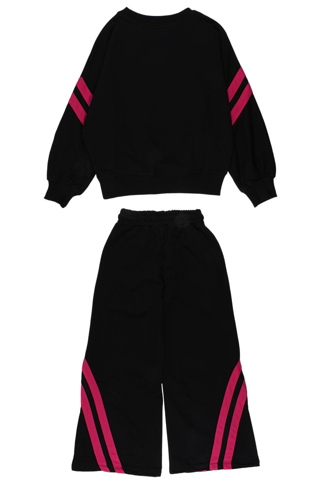 Introducing the elegant Alo set for girls from Guliwerkids . This stylish black set consists of two pieces: a comfortable long-sleeved blouse and matching trousers. The blouse features delicate embellishments at the neckline, adding a touch of charm. The trousers have an elastic waistband for comfort. A perfect choice for the cooler days of the fall and winter season. The entire piece is made of soft material, ensuring comfort and freedom of movement.