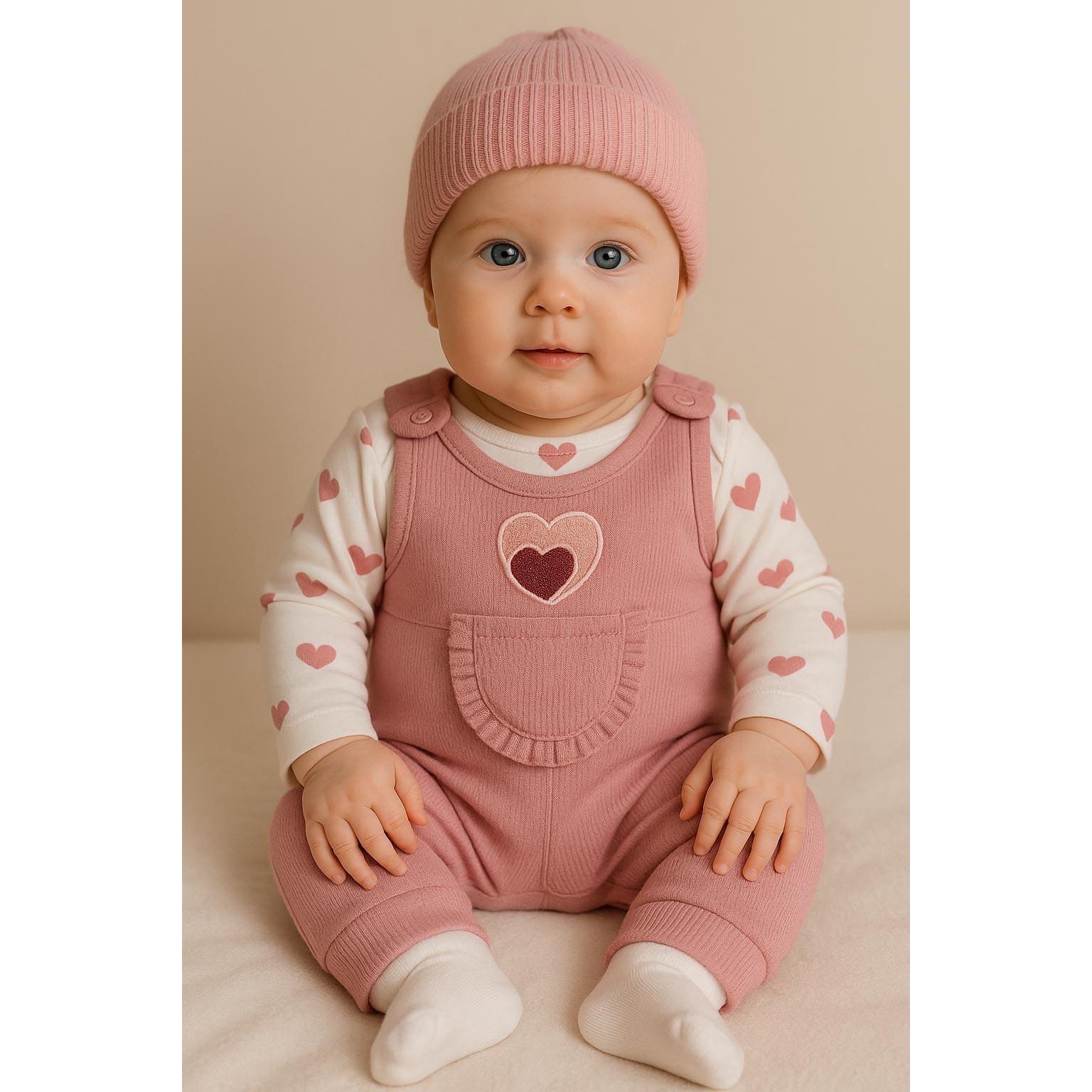 A charming set for a girl consisting of a bodysuit, shorts and socks in a delicate pink colour. The bodysuit has a practical snap fastening, which makes it easy to quickly change the child. The shorts have an elastic waist, ensuring comfort when wearing. The set is perfect for the spring-summer season, made of soft, skin-friendly cotton. The whole is additionally decorated with a subtle pattern that adds charm and style. The socks are colour-coordinated and guarantee full comfort for little feet. This stylish set will work perfectly both in everyday stylisations and for special occasions.
