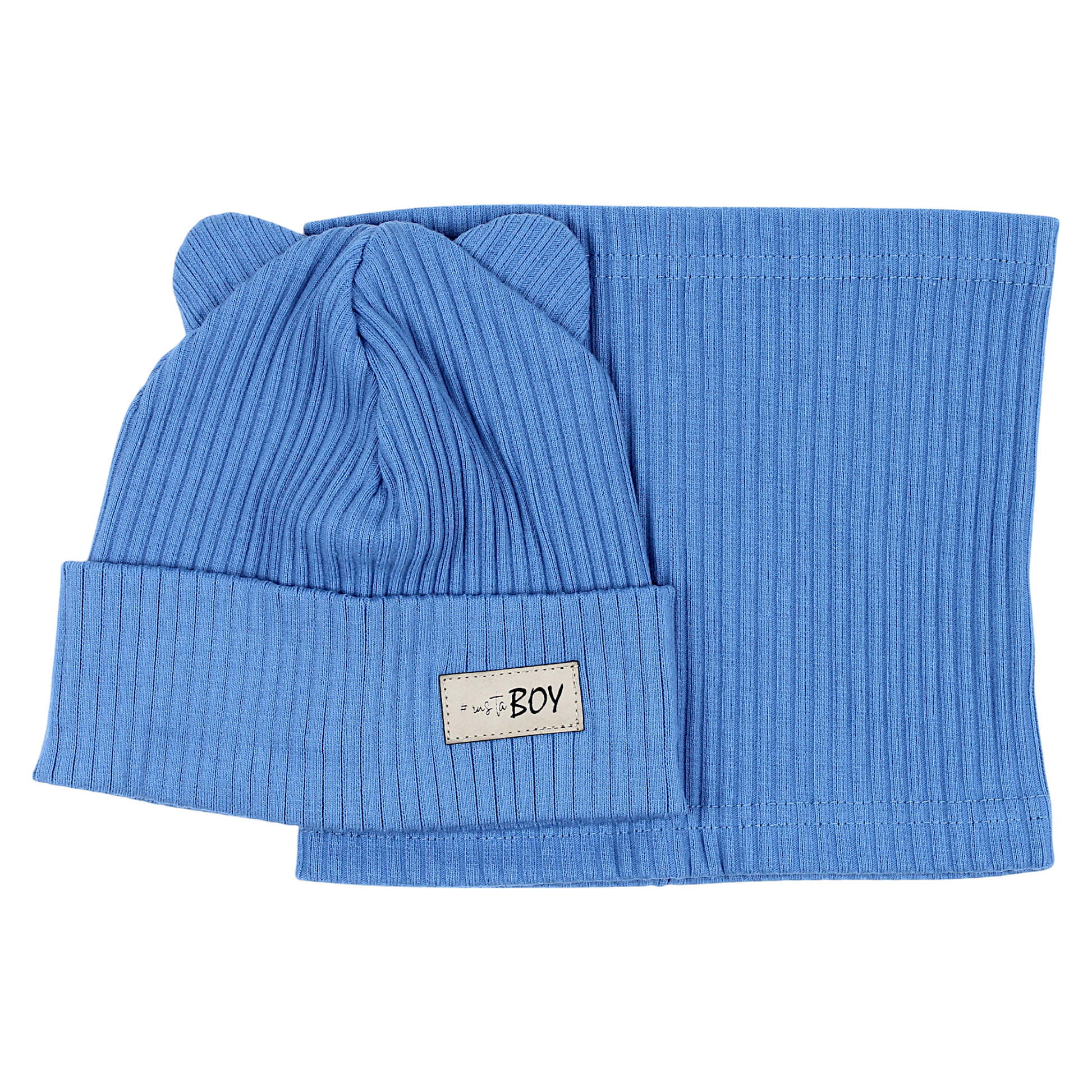 Children's set for spring and autumn It will be useful both on the way to kindergarten and during walks or playing outdoors. Blue hat and scarf set for a boy It goes great with everyday styling – it fits jackets, sweatshirts or sweaters . Thanks elastic cotton the material is non-pressing and pleasant to the touch, which provides the little one with maximum comfort.