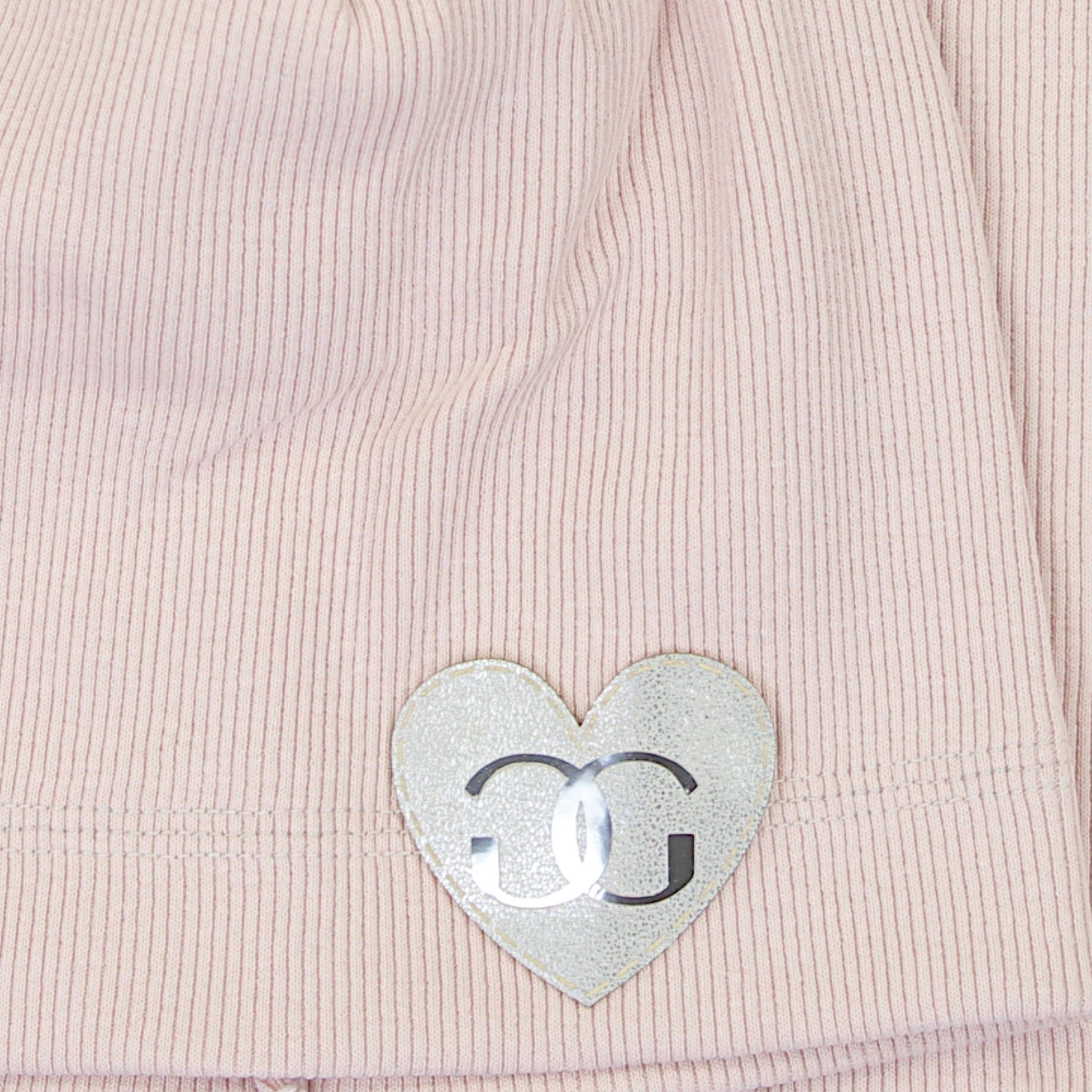 A charming girl's set consisting of a hat and a scarf , made of ribbed cotton , which is soft and flexible, ensuring comfort of wearing. The girl's hat has a classic cut that fits well to the head, and the children's scarf is a practical accessory that protects the neck from the cold. A subtle decorative heart-shaped emblem with a shiny effect gives the set elegance and a fashionable look. Perfect for spring and summer days , it goes perfectly with various styles.