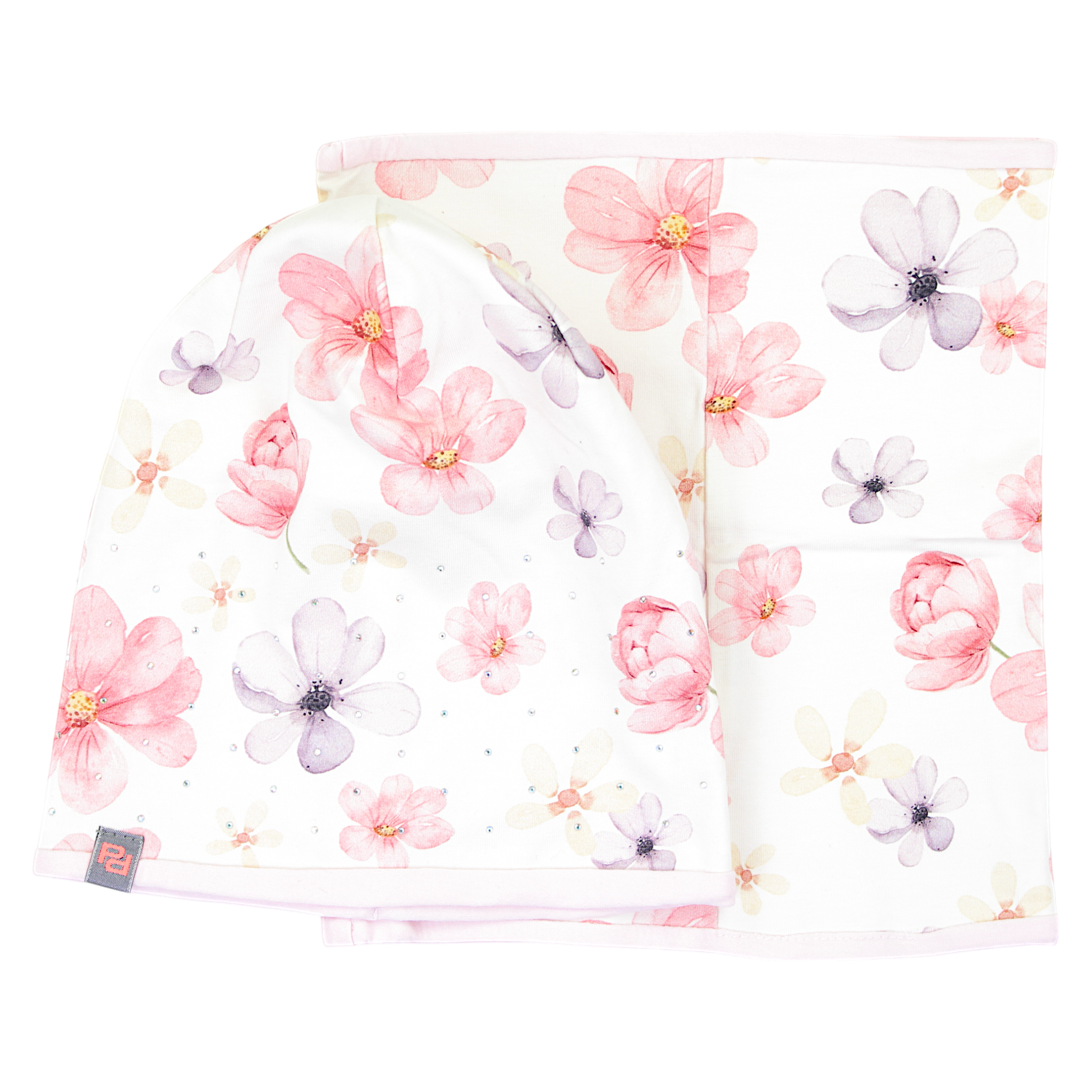 Set girly floral hat and scarf is the perfect choice for warmer days. With ingredients such as 95% cotton and 5% elastane , guarantees comfort and freedom of movement, essential during spring and summer adventures. The delicate, lilac shade fits into fashion trends and perfectly matches a diverse wardrobe.