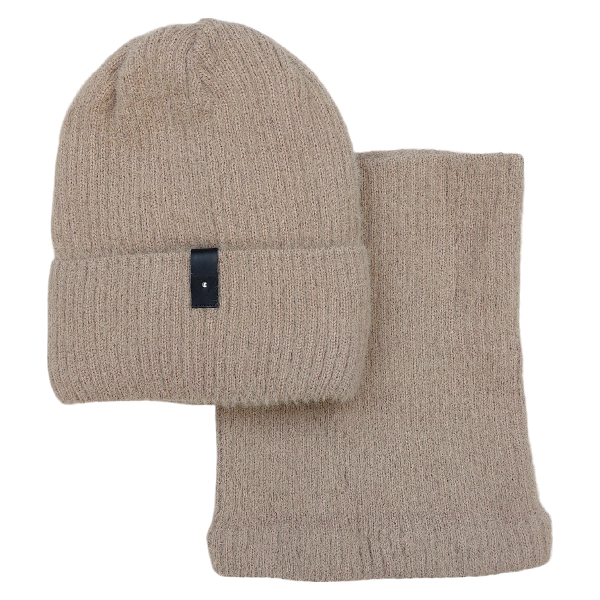 Set of hat with snood alpaca girl beige Grans KA-27-241024-1