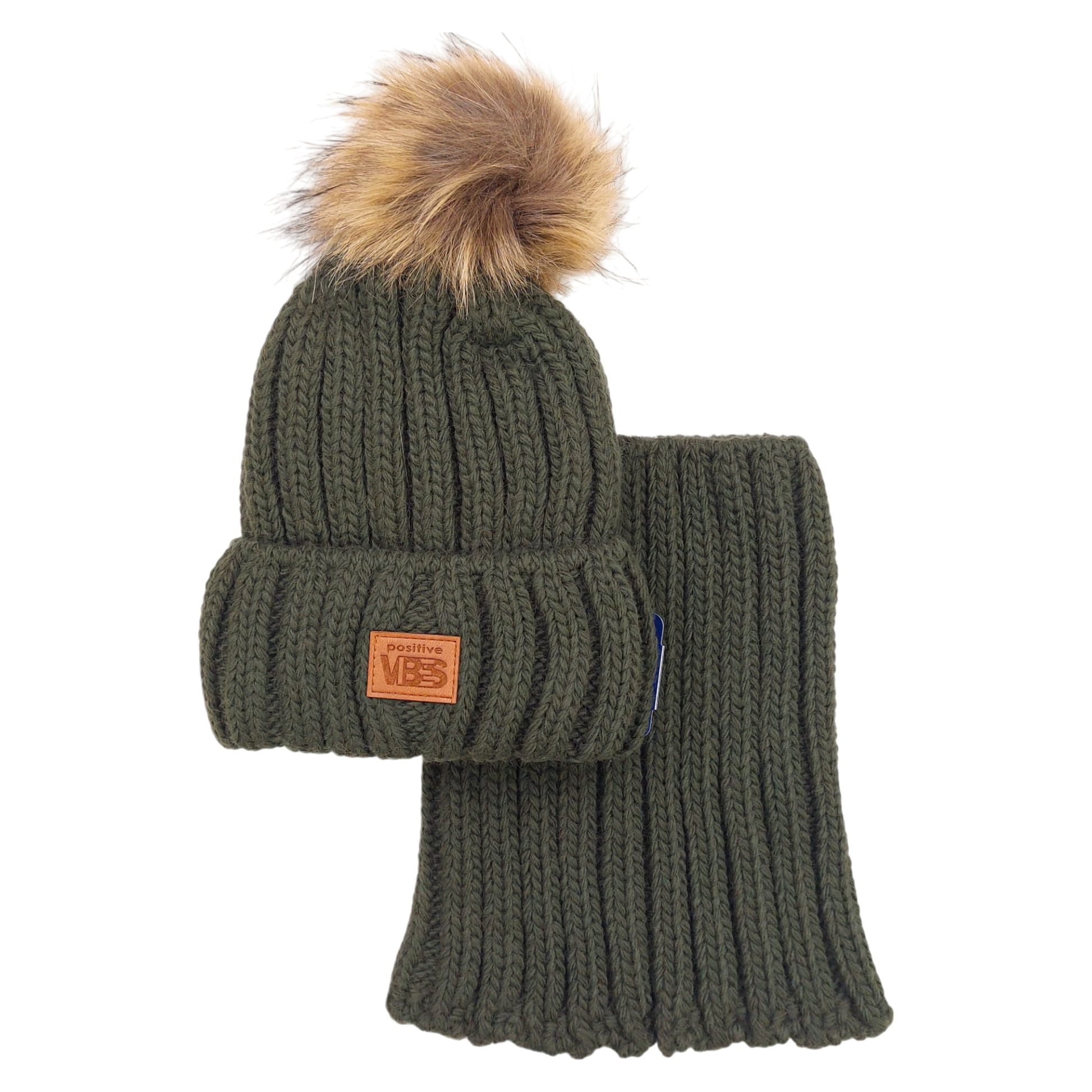 Set of hat with a snood with a pompom for boys green Agbo K-41-241024-48