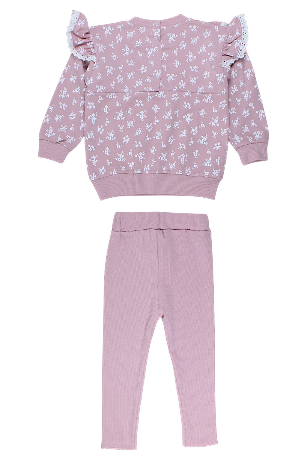 The girls' Frill Set from the renowned Murat Baby brand is a perfect choice for any little fashion lover. It consists of two pieces: a stylish blouse and comfortable shorts . The short-sleeved blouse is adorned with a delicate ruffle , adding charm and girlish grace. The pastel pink color perfectly complements the spring-summer color palette, giving the outfit a light and fresh feel. The shorts have an elastic waistband that adapts to the body, ensuring maximum comfort and freedom of movement for the child. The set is made of high-quality cotton , which is incredibly soft and gentle on baby's skin. The lack of fasteners makes the set easy to put on and take off, something both children and parents will appreciate. This set is perfect for many occasions – both everyday and special occasions. It's a combination of style, elegance, and functionality that is sure to appeal to every little lady and her parents.