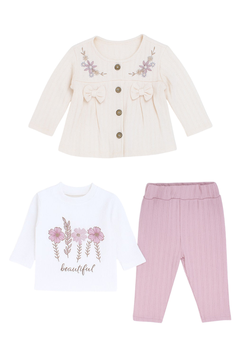 Girls' embroidered set in heather color