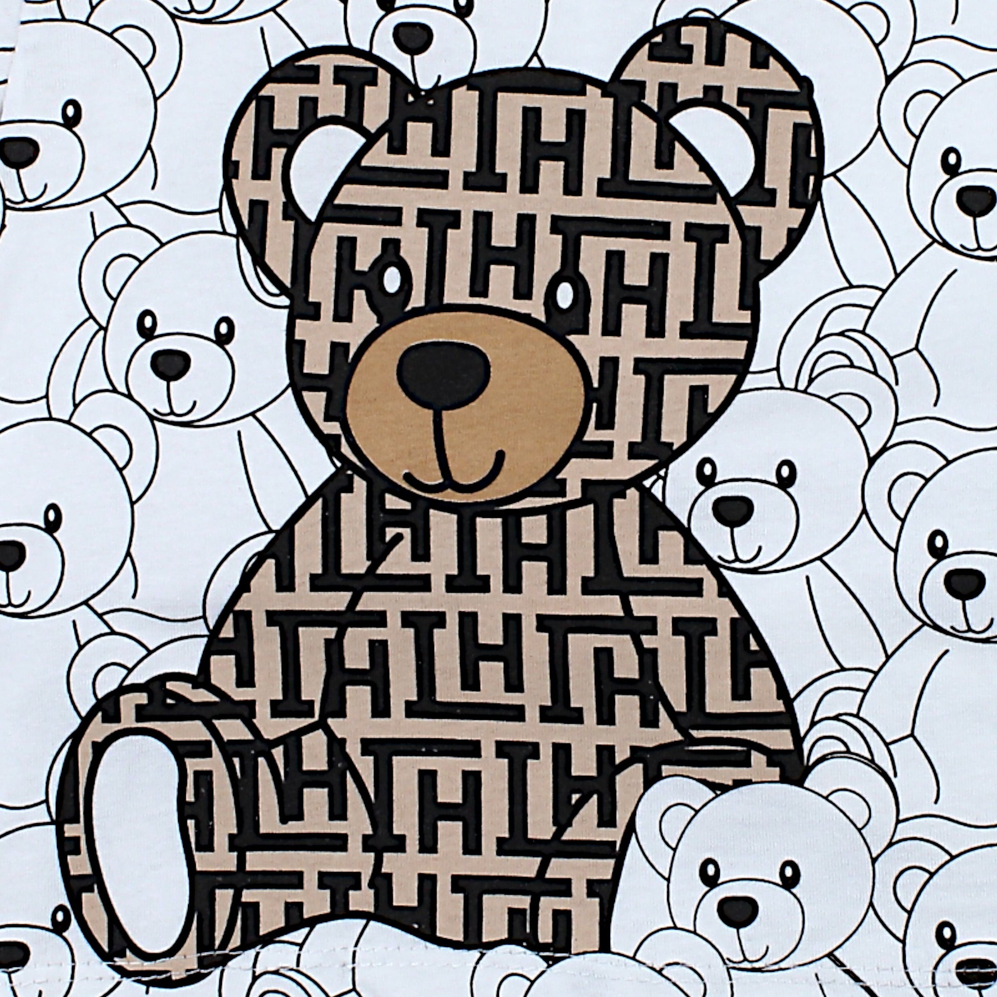 The presented Murat Baby boy set is the perfect solution for the upcoming spring-summer season . The whole is made in a delicate, beige color , which is an attractive basis for styling for boys . The top of the set is a T-shirt with short sleeves, on which there is a charming print of teddy bears . Such a motif wins the hearts of both children and parents. The shorts have comfortable elastic bands at the waist, which ensures fit and comfort of wearing. The materials used allow the skin to breathe, which is extremely important, especially on warmer days. The back of the set is uniform, without additional applications, which adds elegance and simplicity. The product is intended for preschool children , perfect both for everyday use and for special occasions.