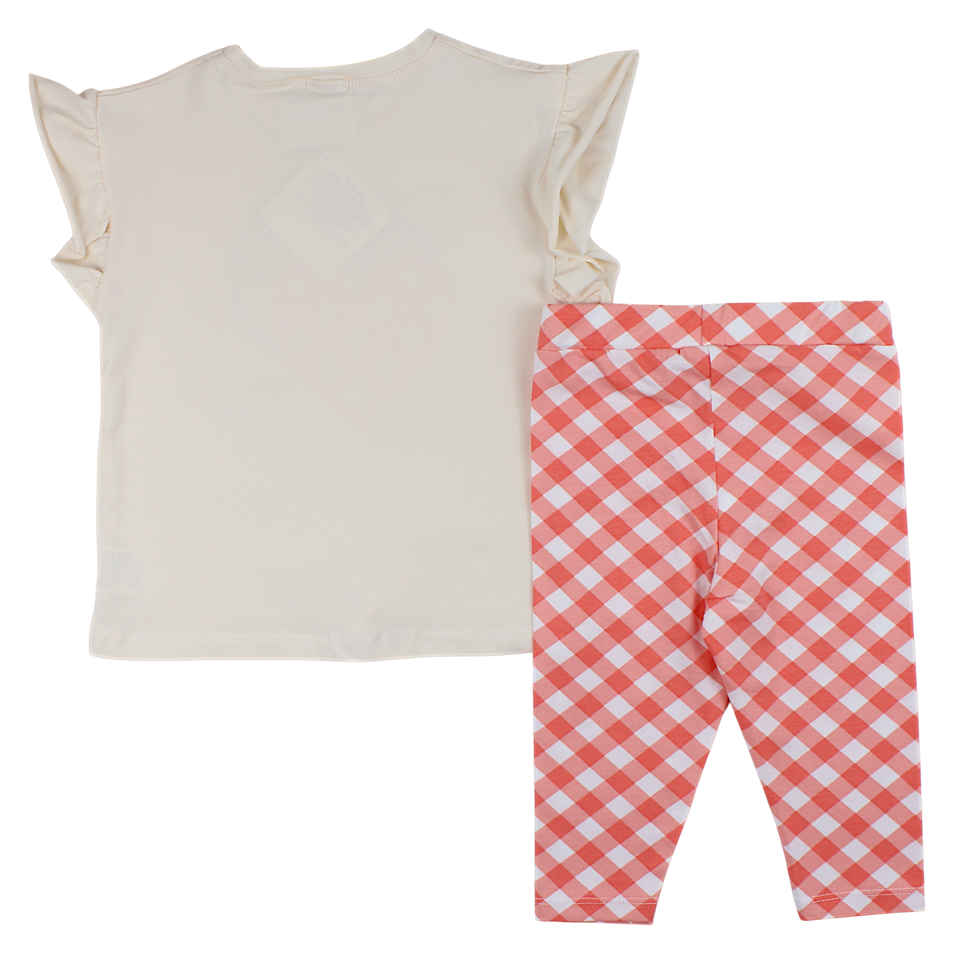 The girly heart set offers a charming style for little girls, perfect for spring and summer. It's made of a delicate beige fabric that's comfortable and breathable. Thanks to the Lycra blend, the set fits snugly, allowing for freedom of movement. A decorative heart on the front of the top adds a touch of charm to the entire ensemble. The shorts have an elastic waist for added comfort. The whole creates a harmonious and fashionable ensemble, perfect for any little lady.