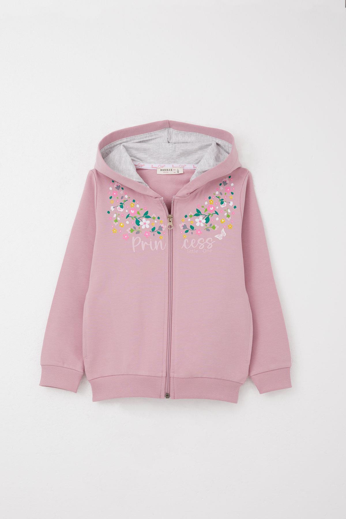 We present a girls' sports set in an elegant dusty pink color from Breeze . This set is perfect for the fall and winter season, providing comfort and style. The set consists of two pieces: a long-sleeved sweatshirt and pants. The sweatshirt has practical pockets and a convenient zipper closure, making it easy to put on and take off. The pants have an elastic waist for comfort. The entire set is made of soft material, making it pleasant to the touch and ideal for baby's delicate skin.