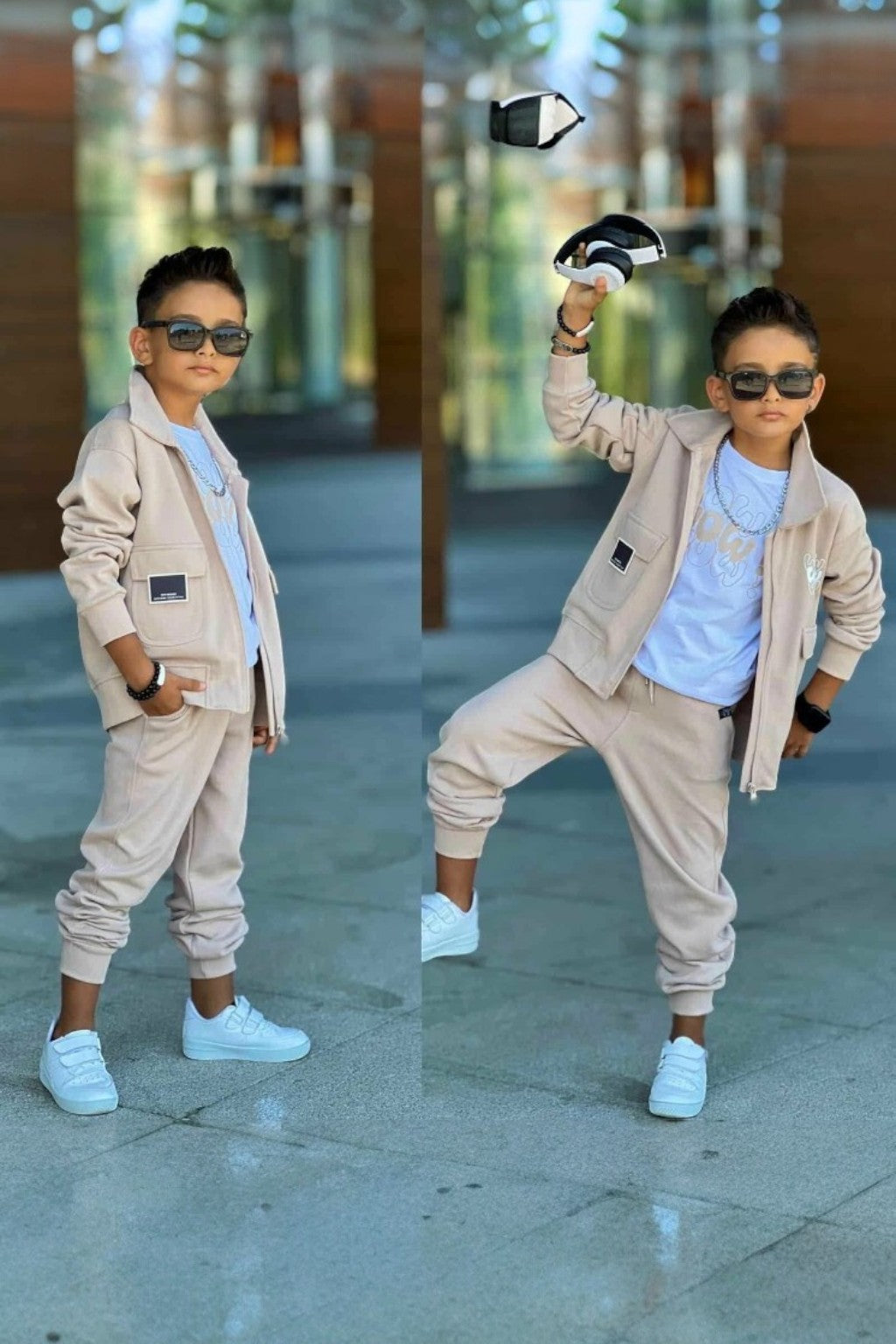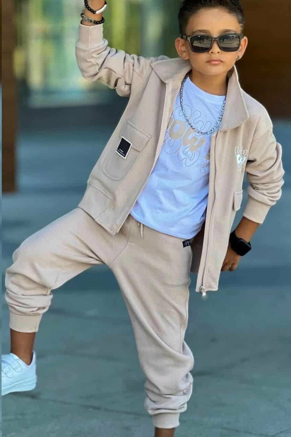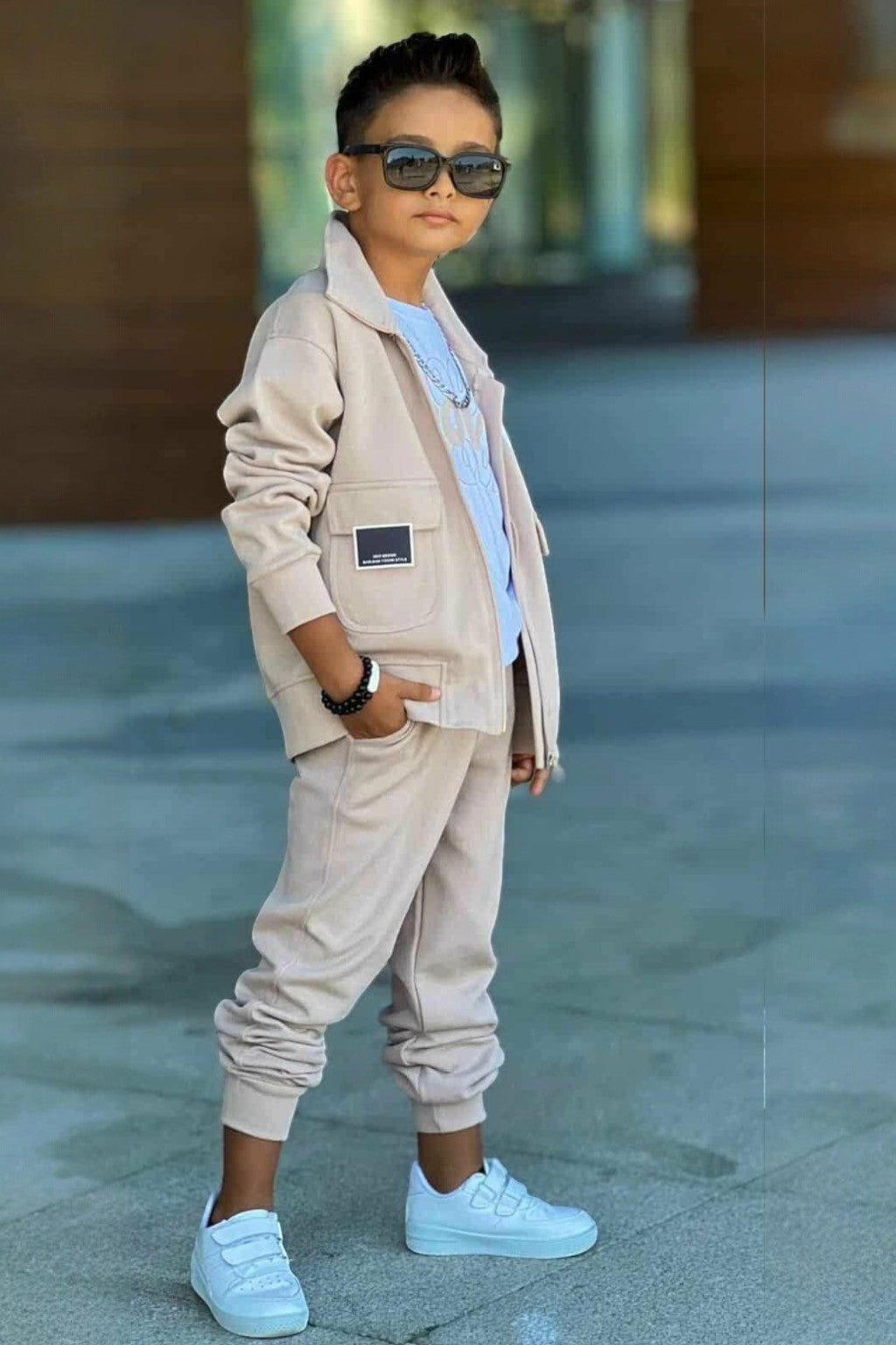 Beżowy komplet chłopięcy Bam Bam na wiosnę-lato