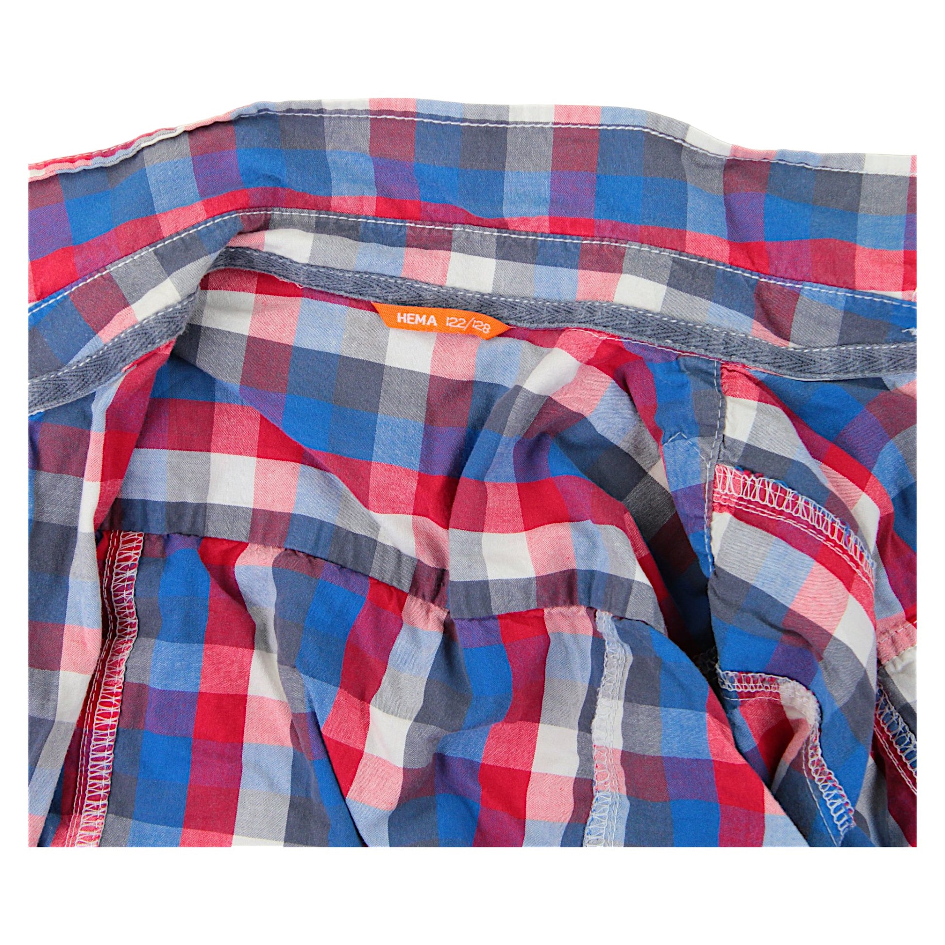 Stylish long-sleeved shirt for boys in a classic navy, red and white check pattern. The shirt has two practical button-fastened chest pockets and decorative patches that add a modern touch. Fastened with buttons along the entire length, making it easy to put on and take off. Perfect for everyday wear and more formal occasions.