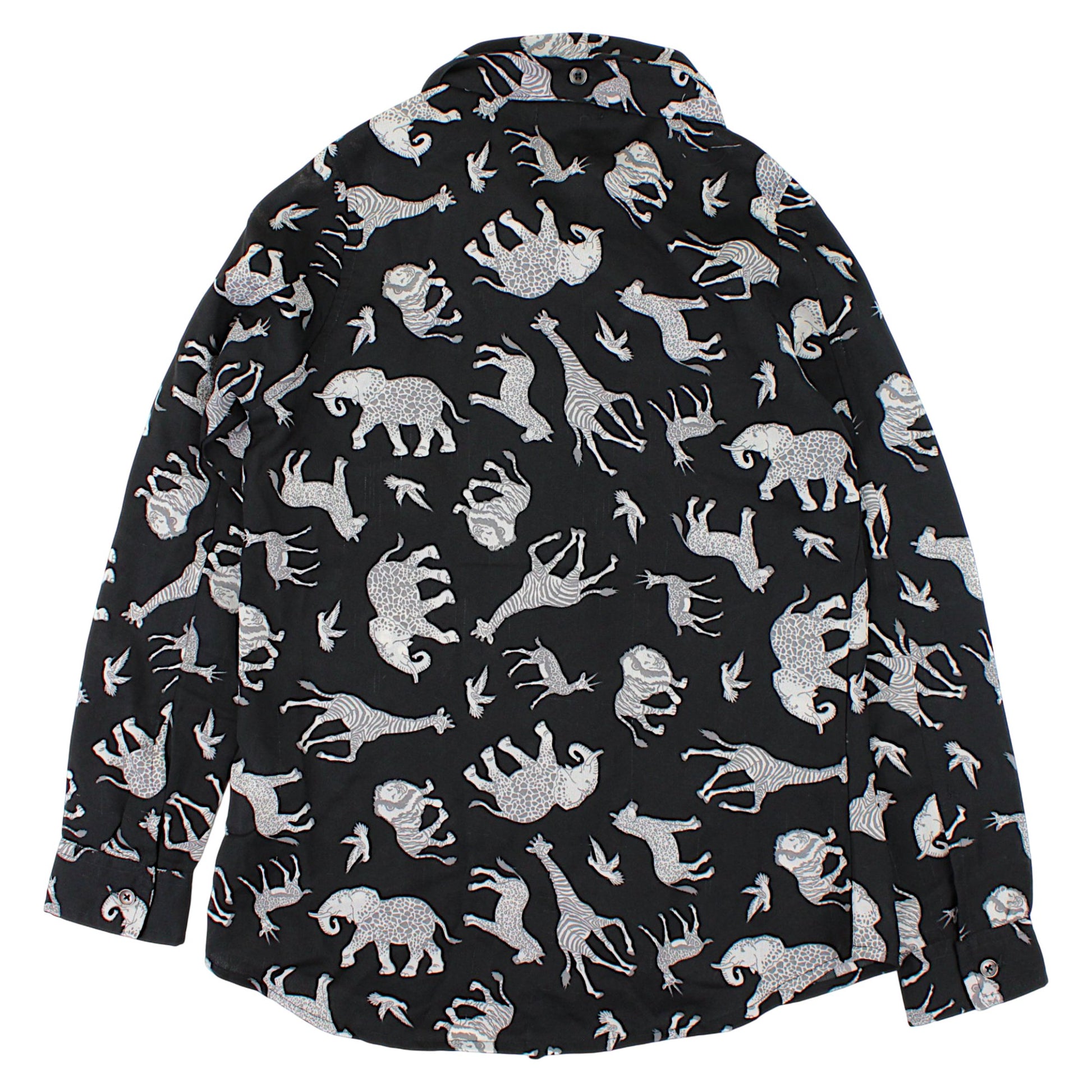 Black boy's shirt with an original animal pattern from Party Collection . Made of light material, perfect for spring and summer . Long sleeves with the possibility of rolling up and a button closure along the entire length. The stylish pattern with a wild animal motif adds originality and makes the shirt fit perfectly with various styles.
